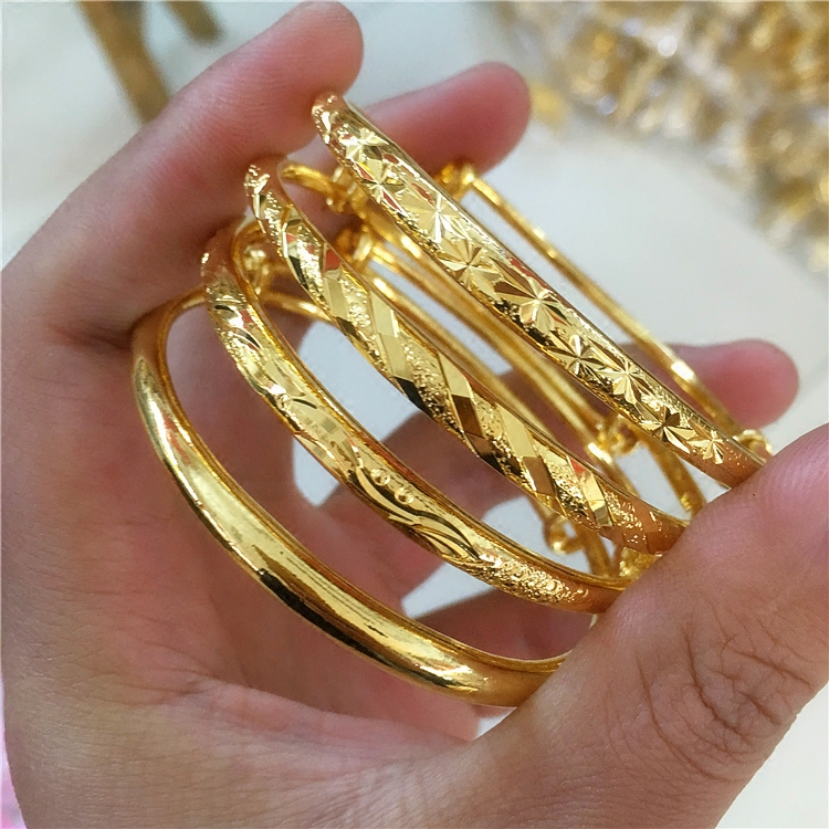 经典越南沙金色手镯子高抛光面手镯女手链饰品龙凤满天星调节礼物