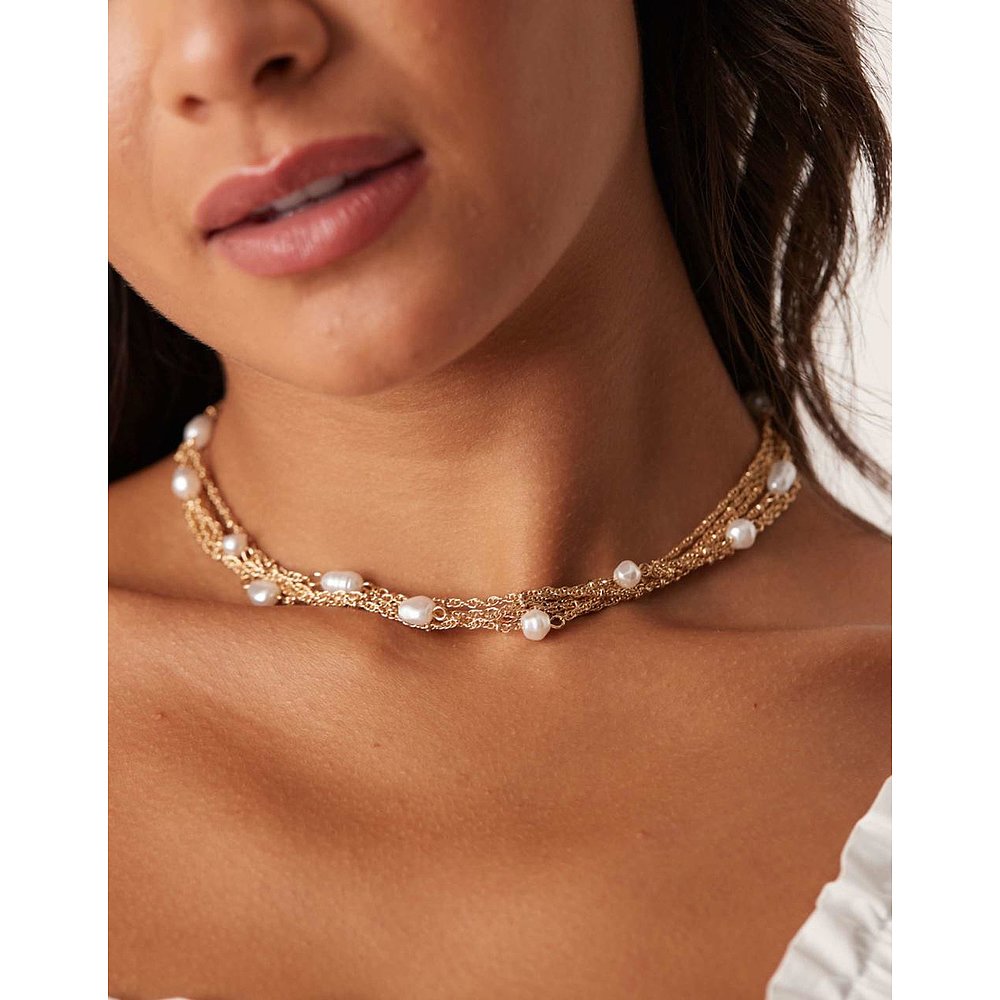 1h可退 香港直邮ASOS 女士 chains 设计多排人造珍珠色调短项链()
