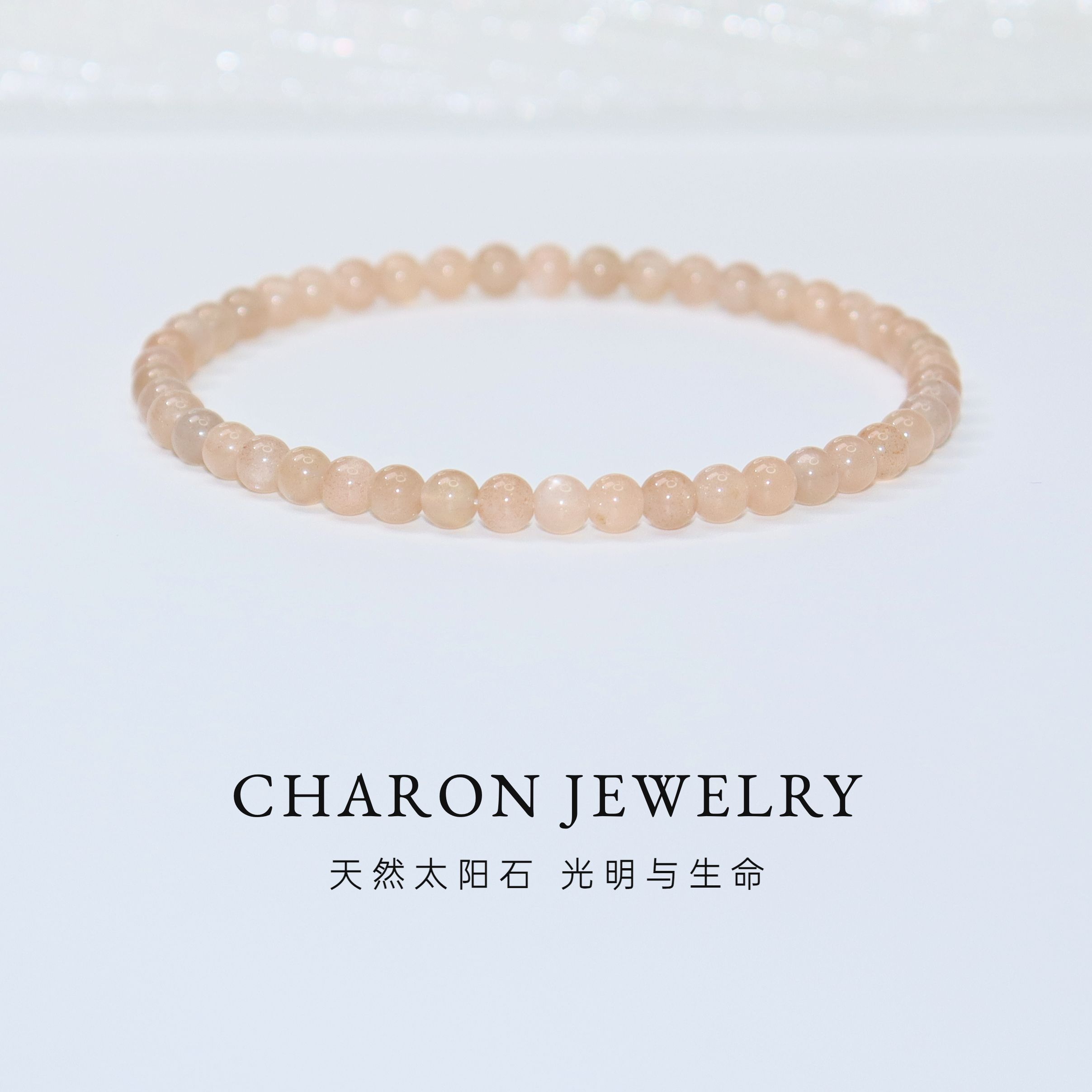 Charon天然7A极橙色太阳石手串强烈金沙橙月光圆珠手链女饰品礼物