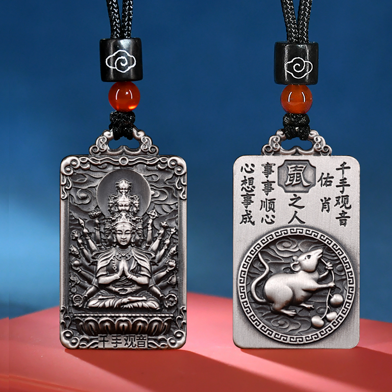 纯银十二生肖吊坠男女款实心方牌挂坠兔年属相999足银毛衣链挂件