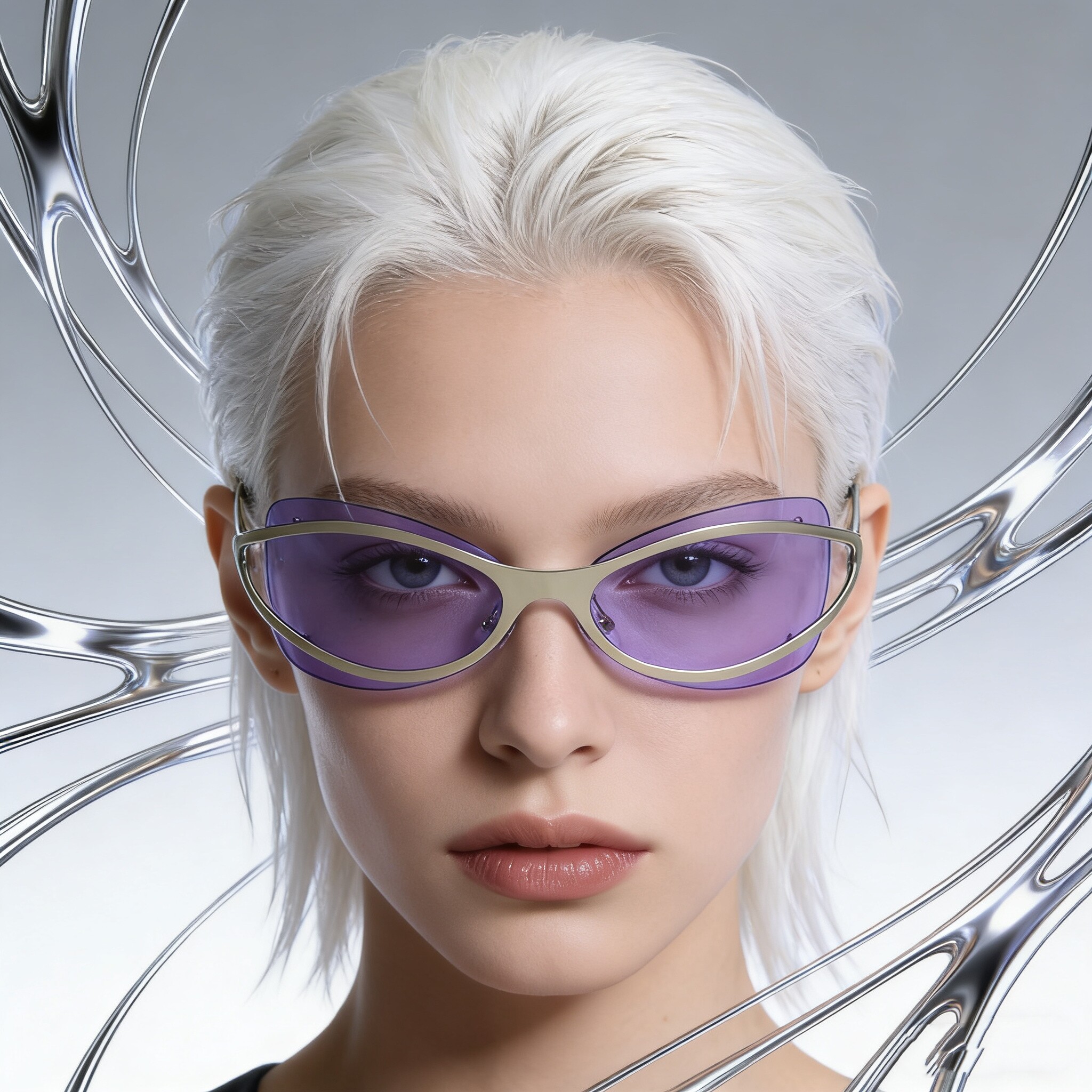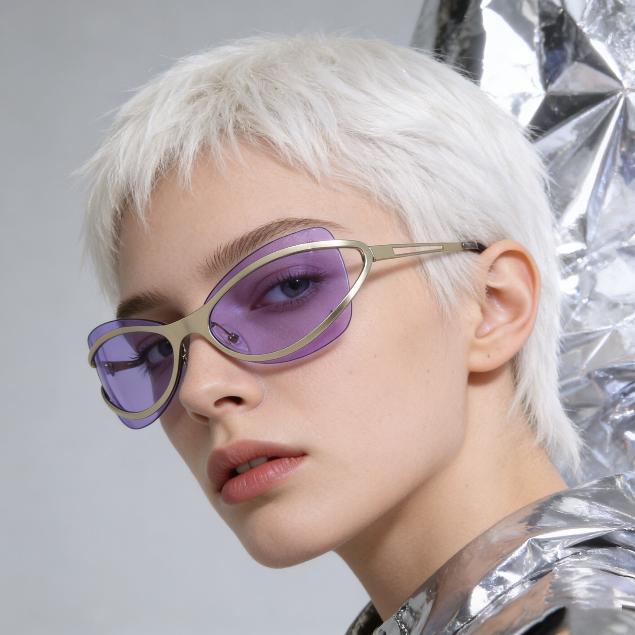 无框设计未来感小众太阳眼镜UV400防紫外线辐射防晒紫色前卫墨镜