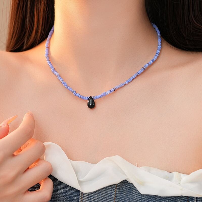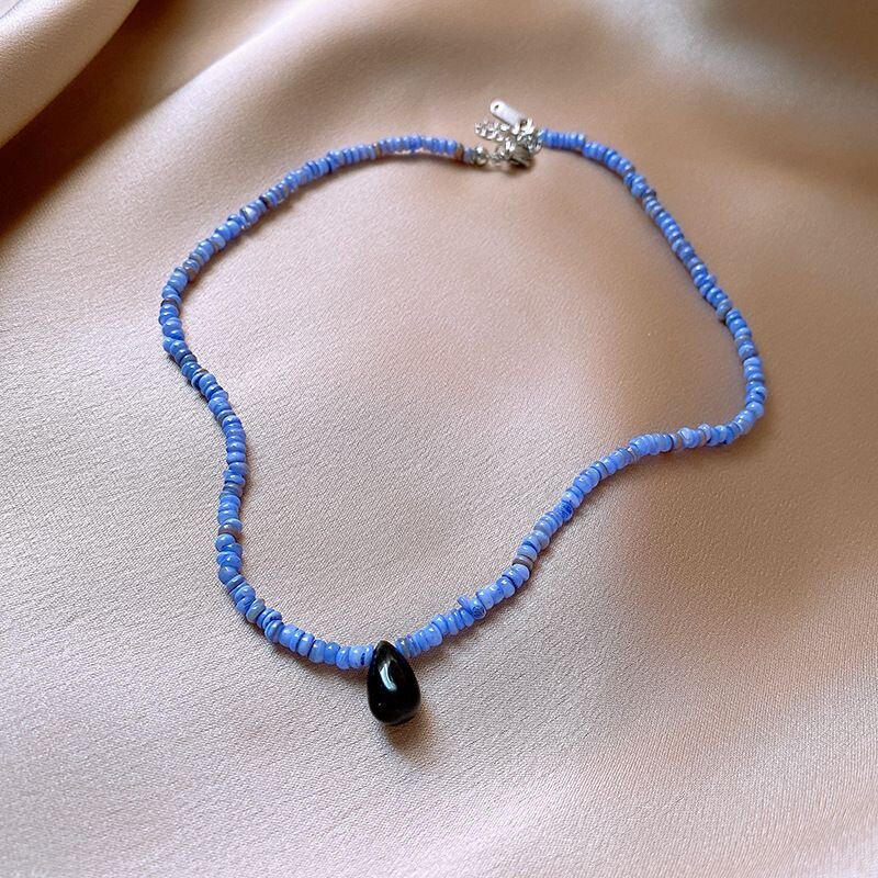 新中式蓝色贝珠串珠水滴项链个性时尚锁骨链时尚甜美高级感项饰女