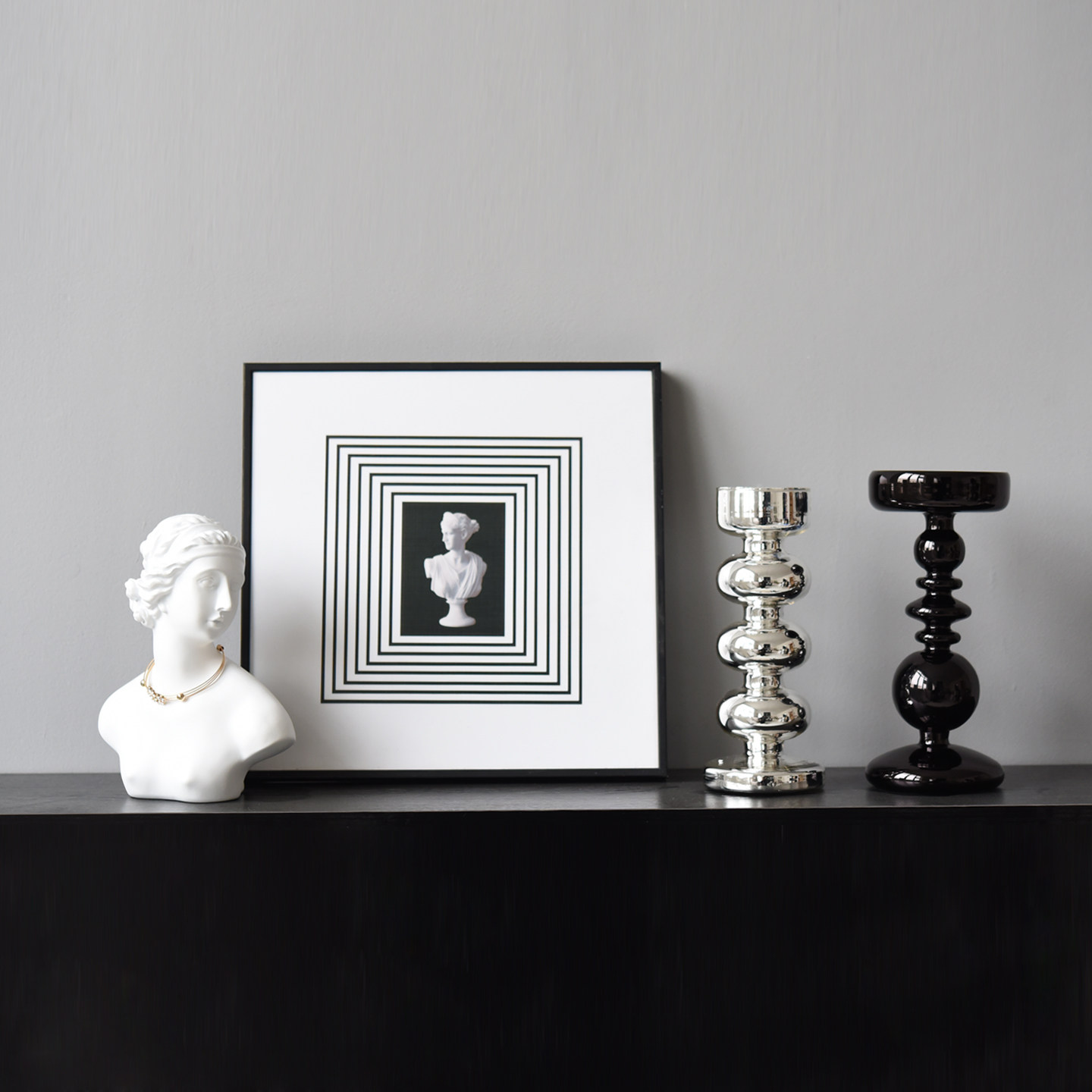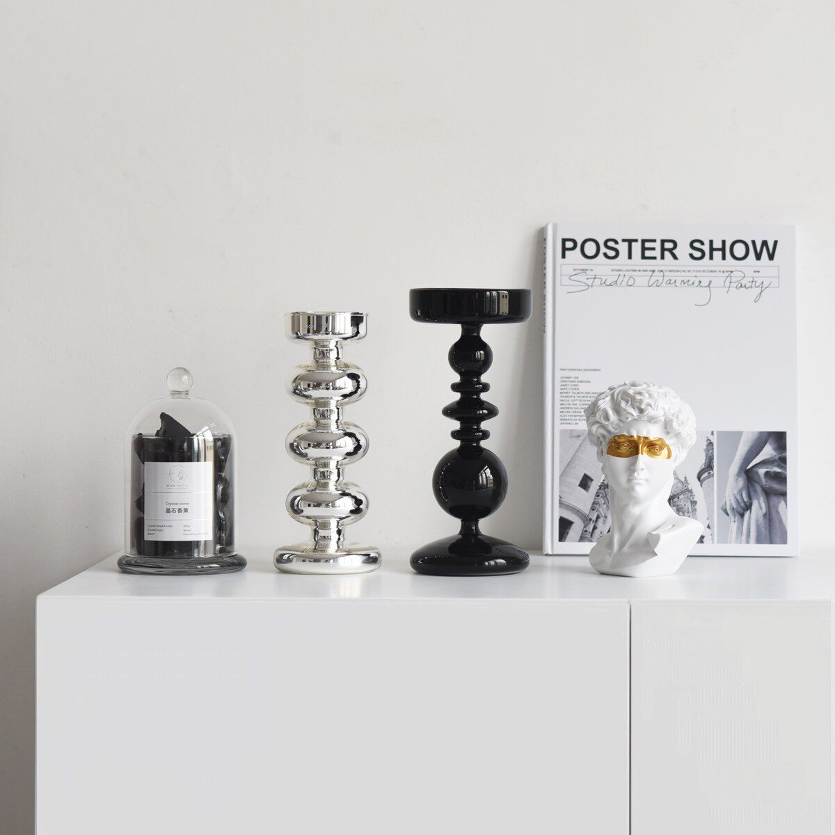 高级感法式北欧艺术黑色玻璃摆件装饰烛台家居装饰品轻奢桌面摆设