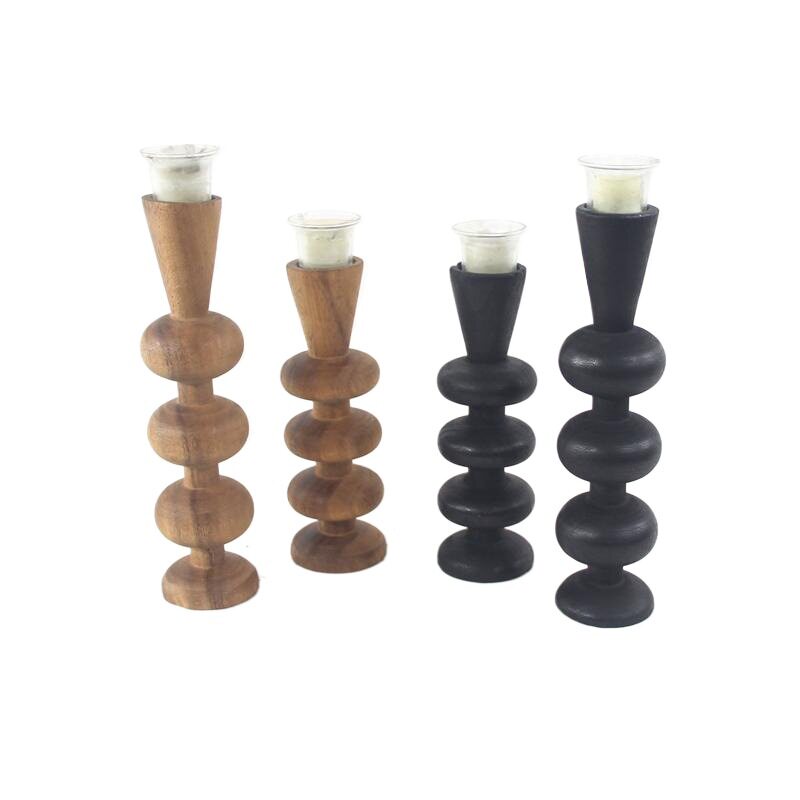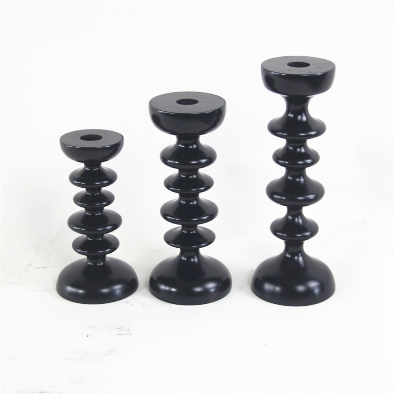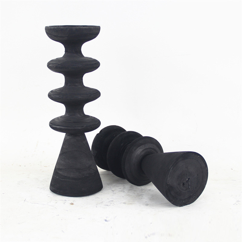 新中式木质碳化黑色层叠烛台摆件家居样板间玄关艺术装饰品蜡烛台