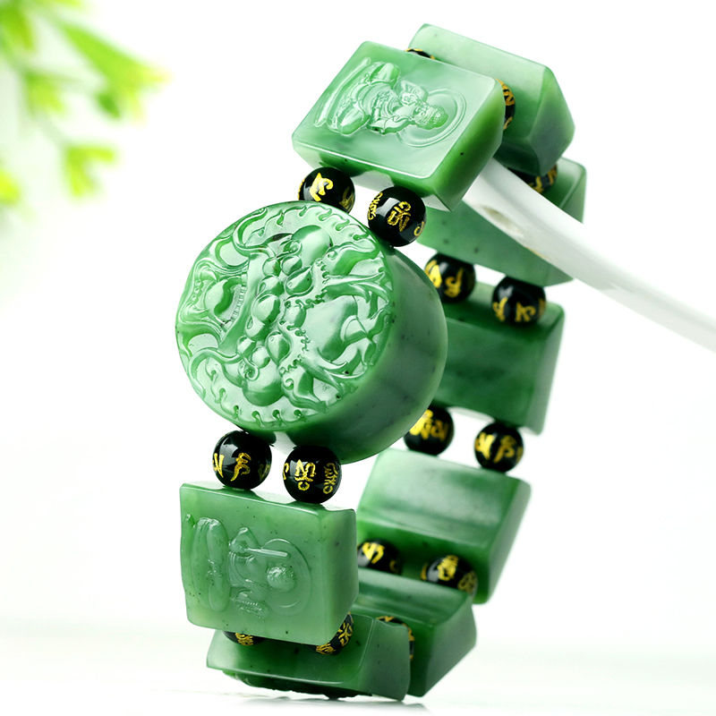 四通新疆和田玉手排八大本命佛手链男款天然碧玉龙头十二生肖菩萨