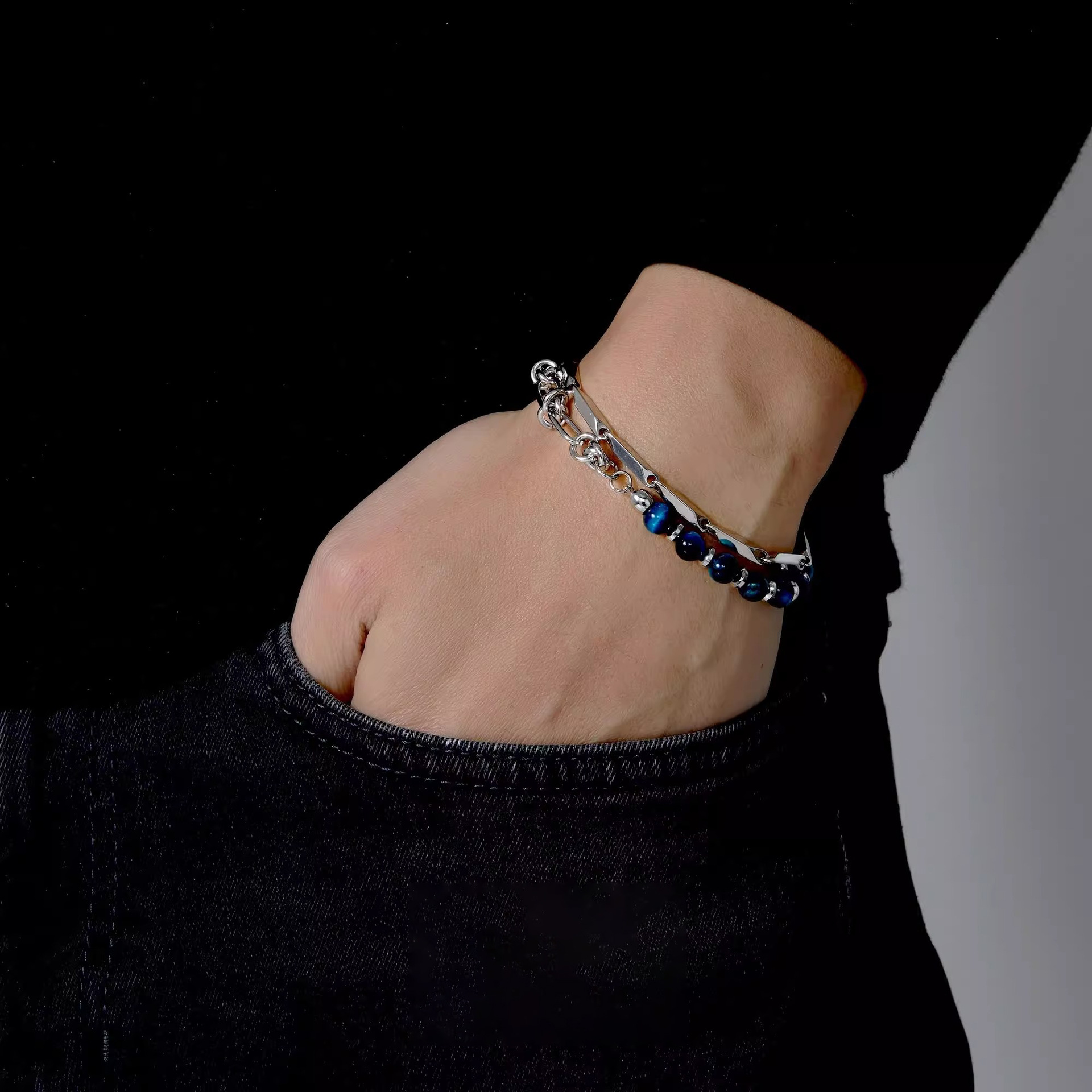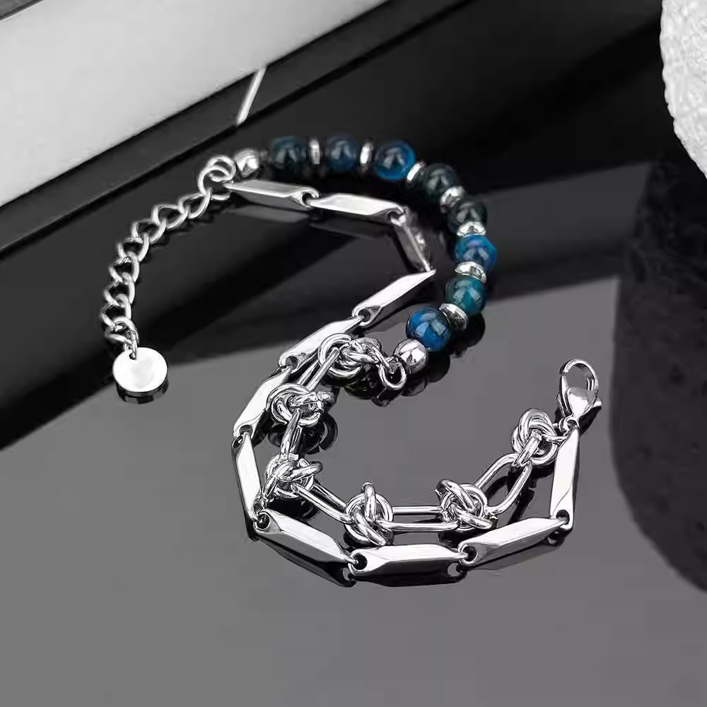 国潮冷淡风蓝色串珠拼接手链莫比乌斯双层叠戴手串男女款情侣猛男
