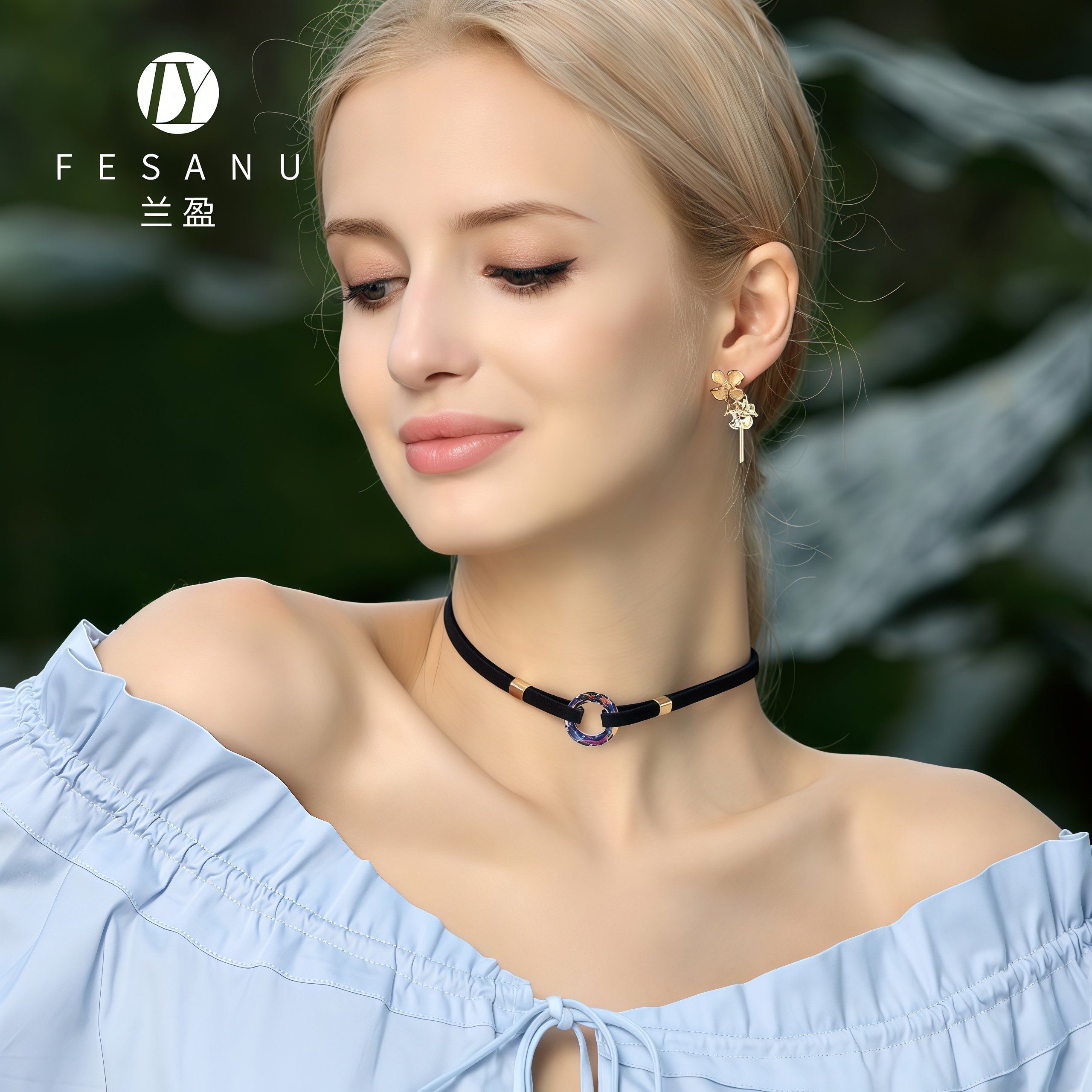 兰盈choker颈链项圈奥地利水晶吊坠锁骨女项链新款脖子链生日礼物