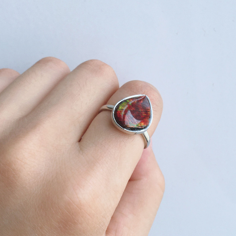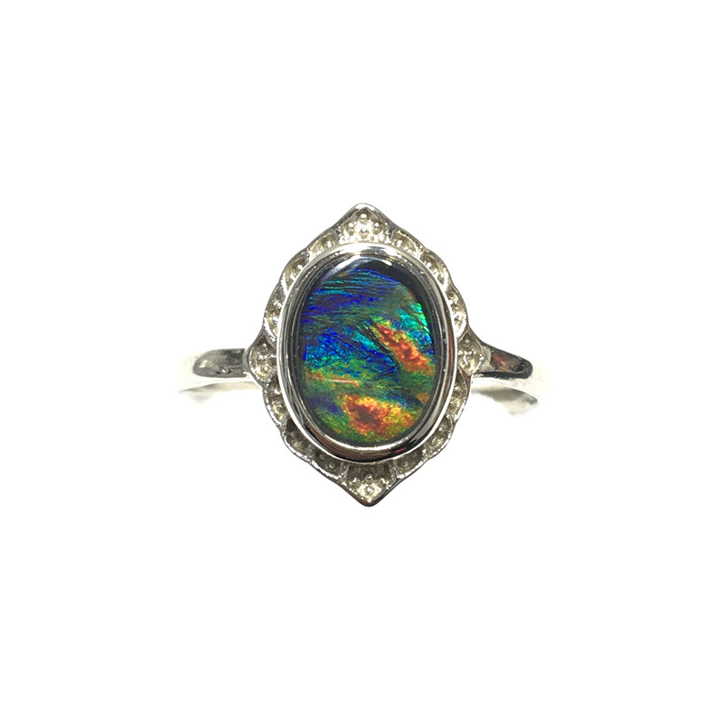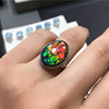 捡漏天然斑彩戒指男女s925纯银镶嵌七彩色多斑彩石蛋面大卫星戒指
