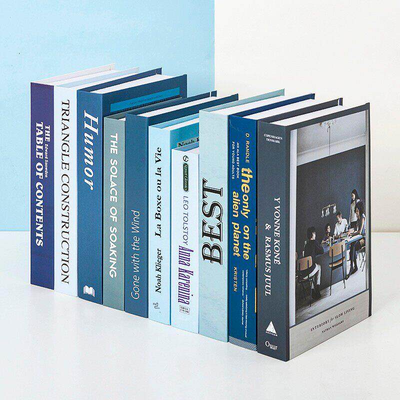 蓝色绿彷真假书软装饰品摆件客厅书房展厅摆设现代简约拍照道具书