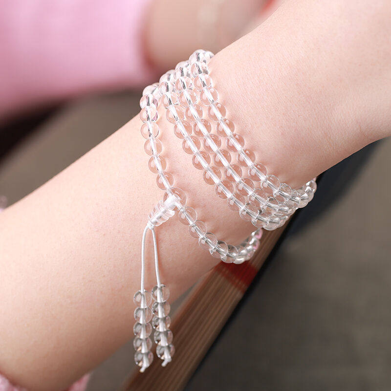 天然白水晶手链金刚萨埵修法水晶108颗佛珠念珠葫芦手串男女