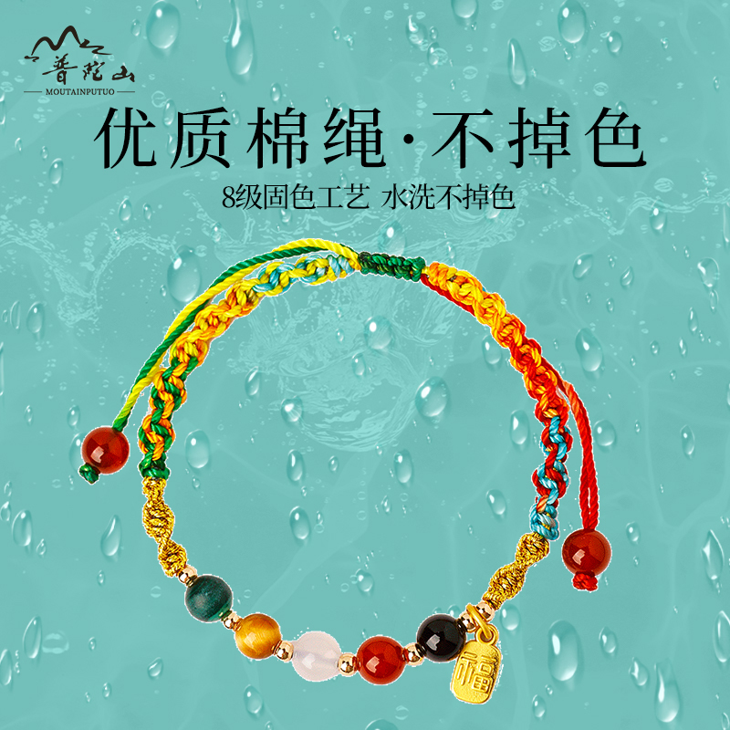 普陀山端午节五彩绳手链手工编织古法传统五彩线五路财神2025新款