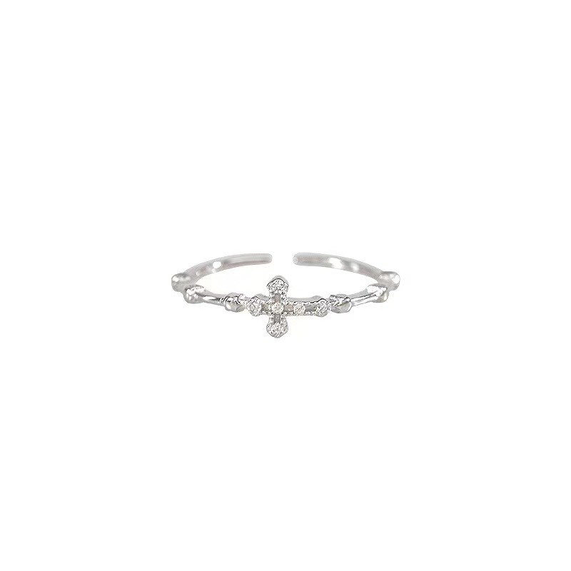 十字架素圈戒指女冷淡风时尚百搭小众设计极简个性细开口食指戒潮