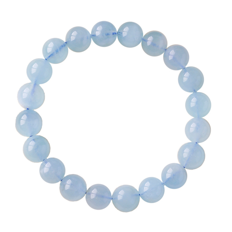 天然水晶海蓝宝手链海蓝宝圆珠单圈补水蓝色水晶手链转运珠礼物
