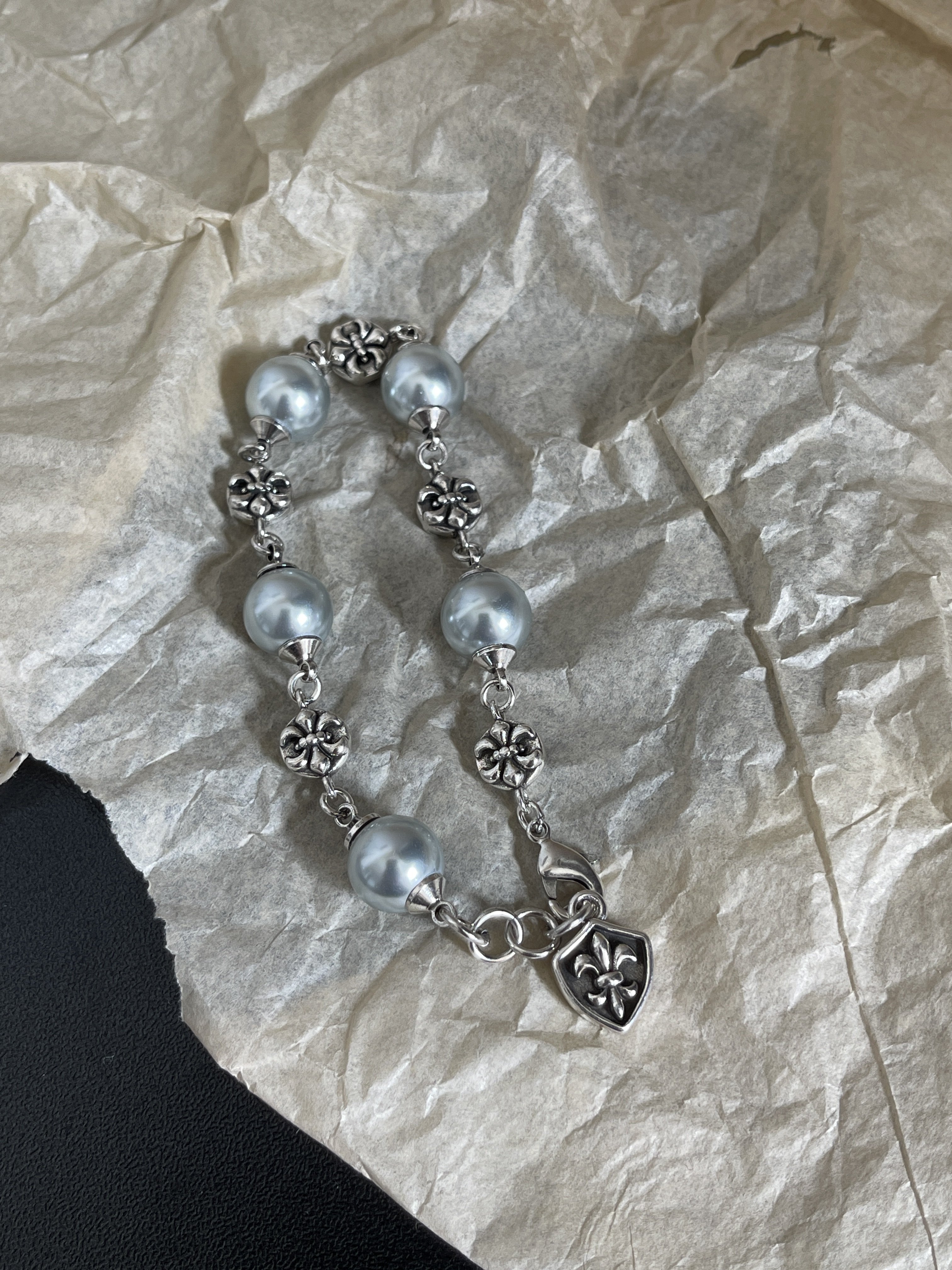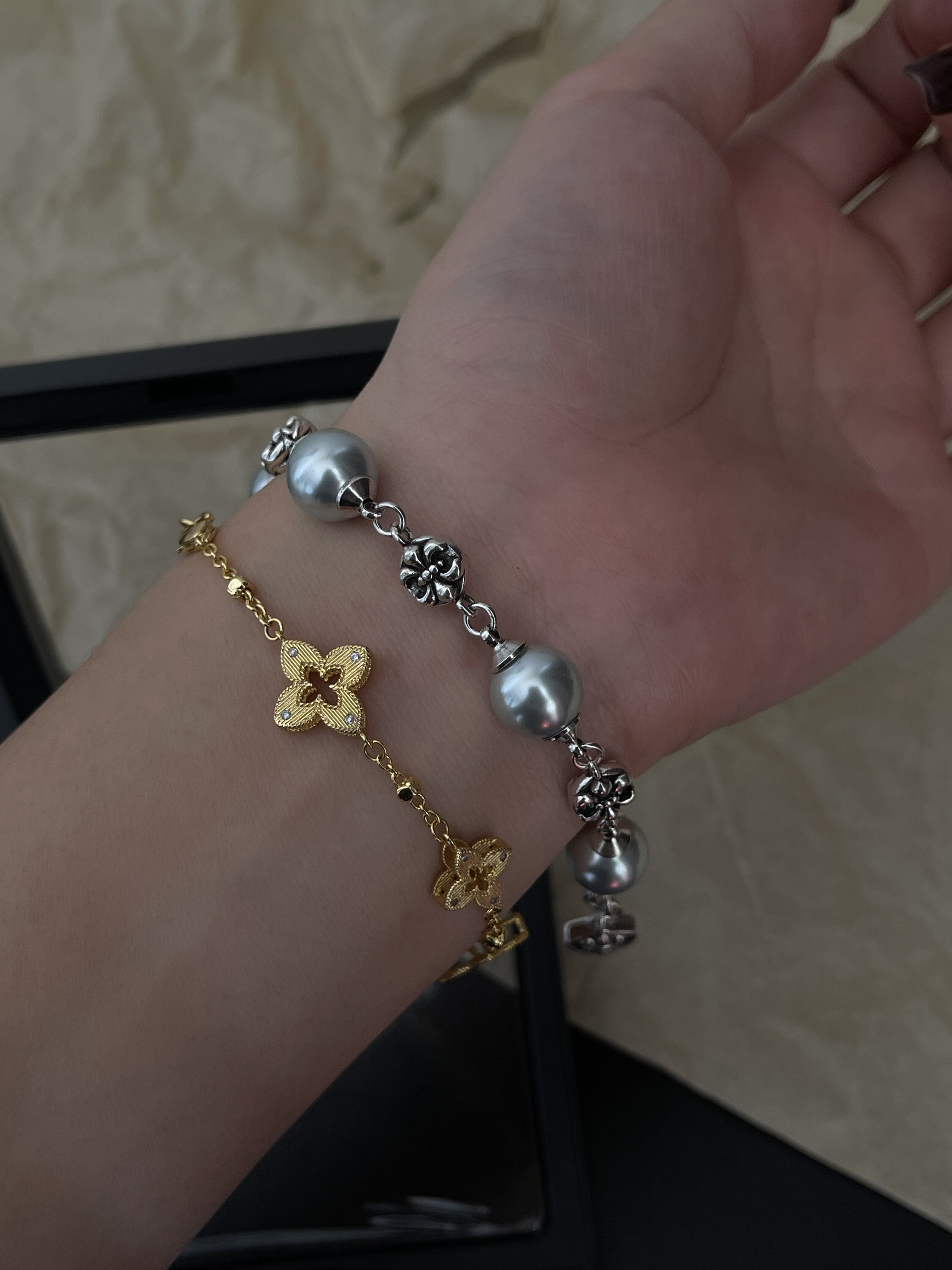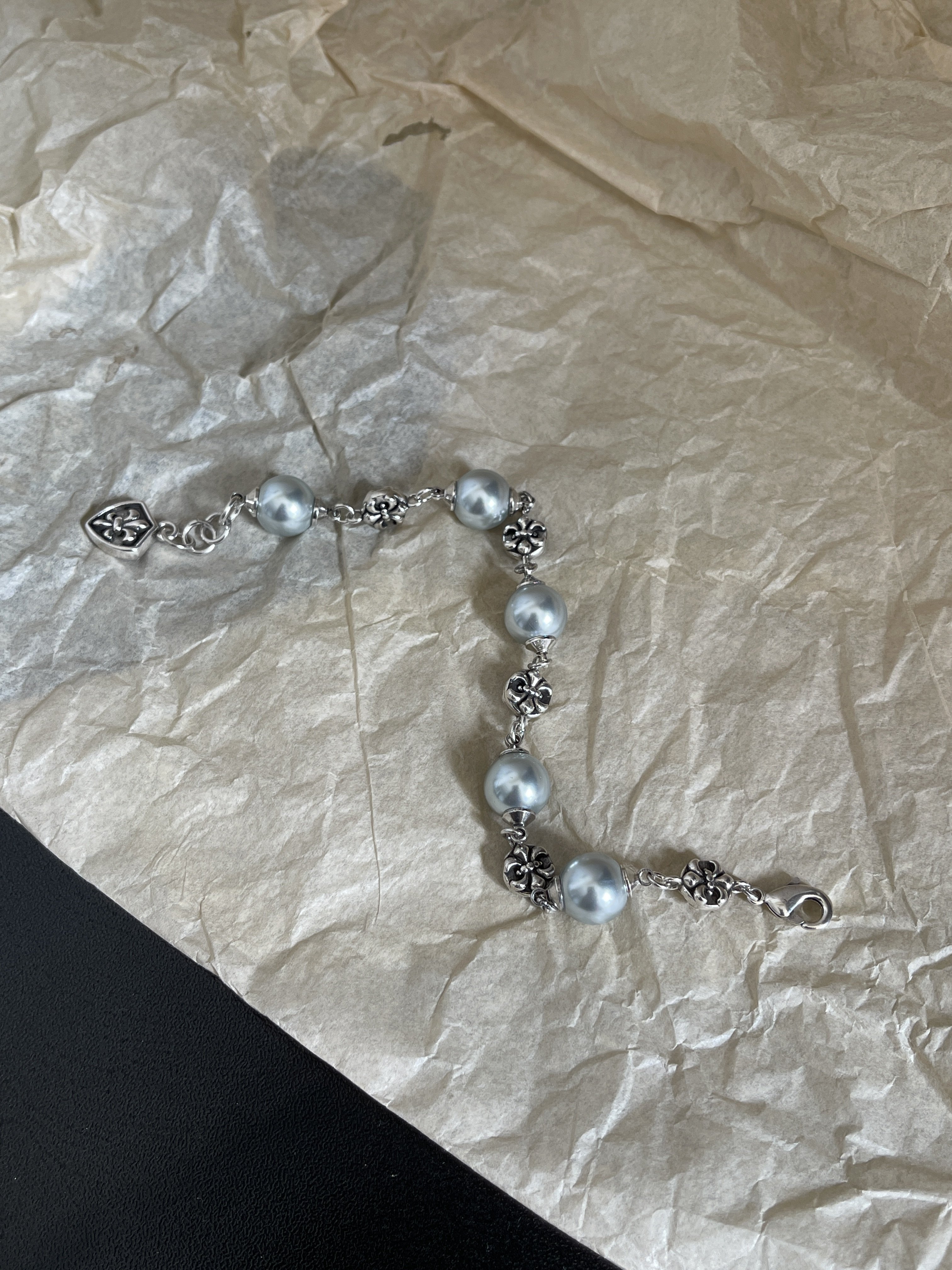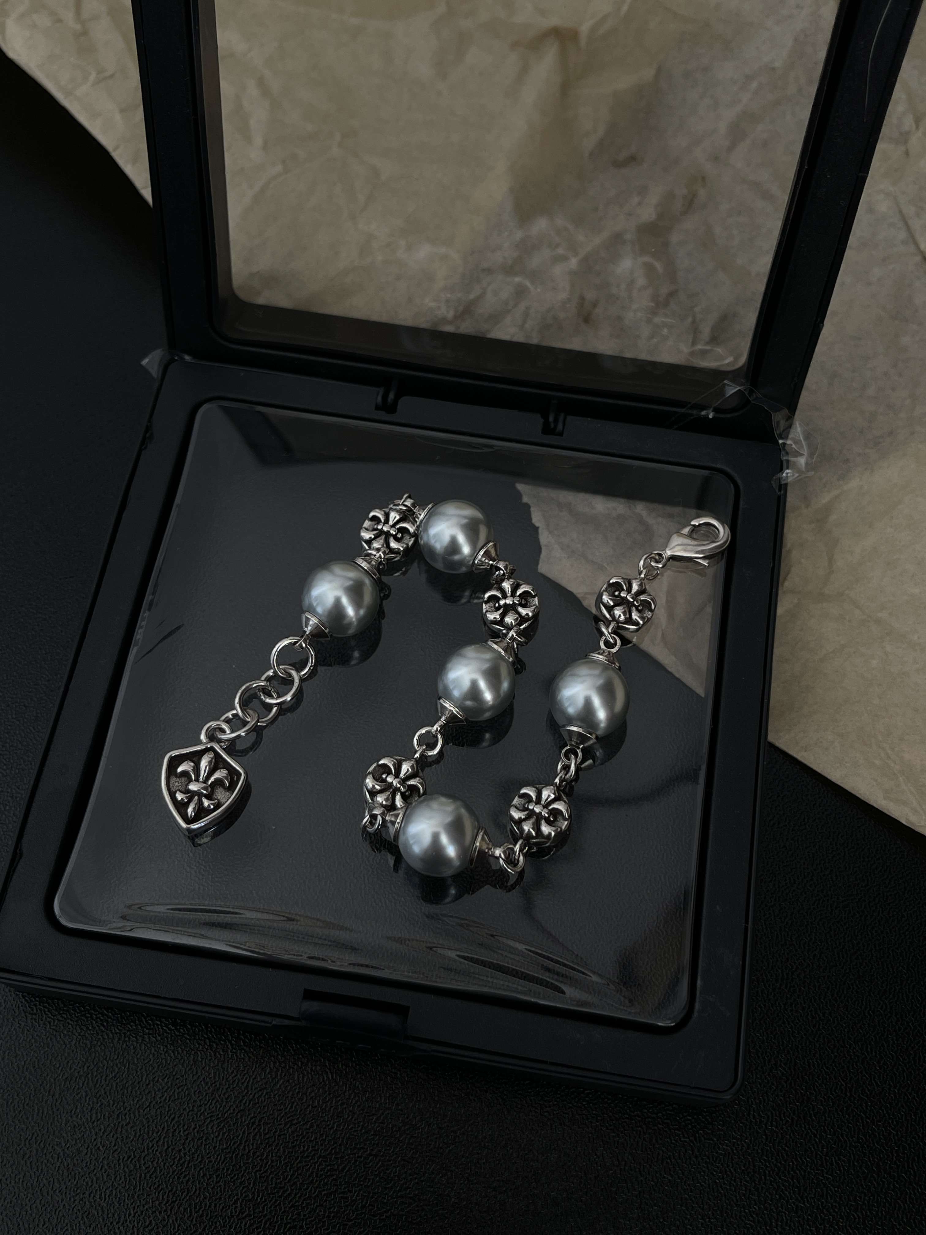 潮牌复古做旧船锚灰色施家珍珠手链女小众设计感高级轻奢手饰