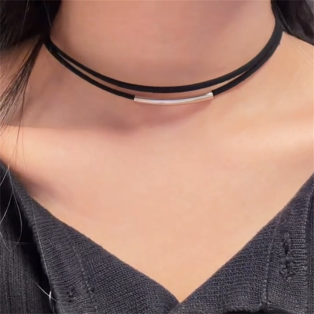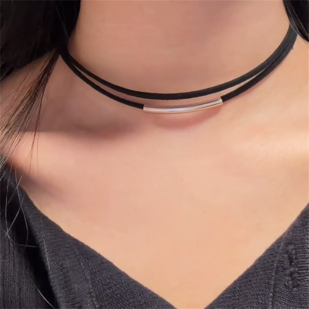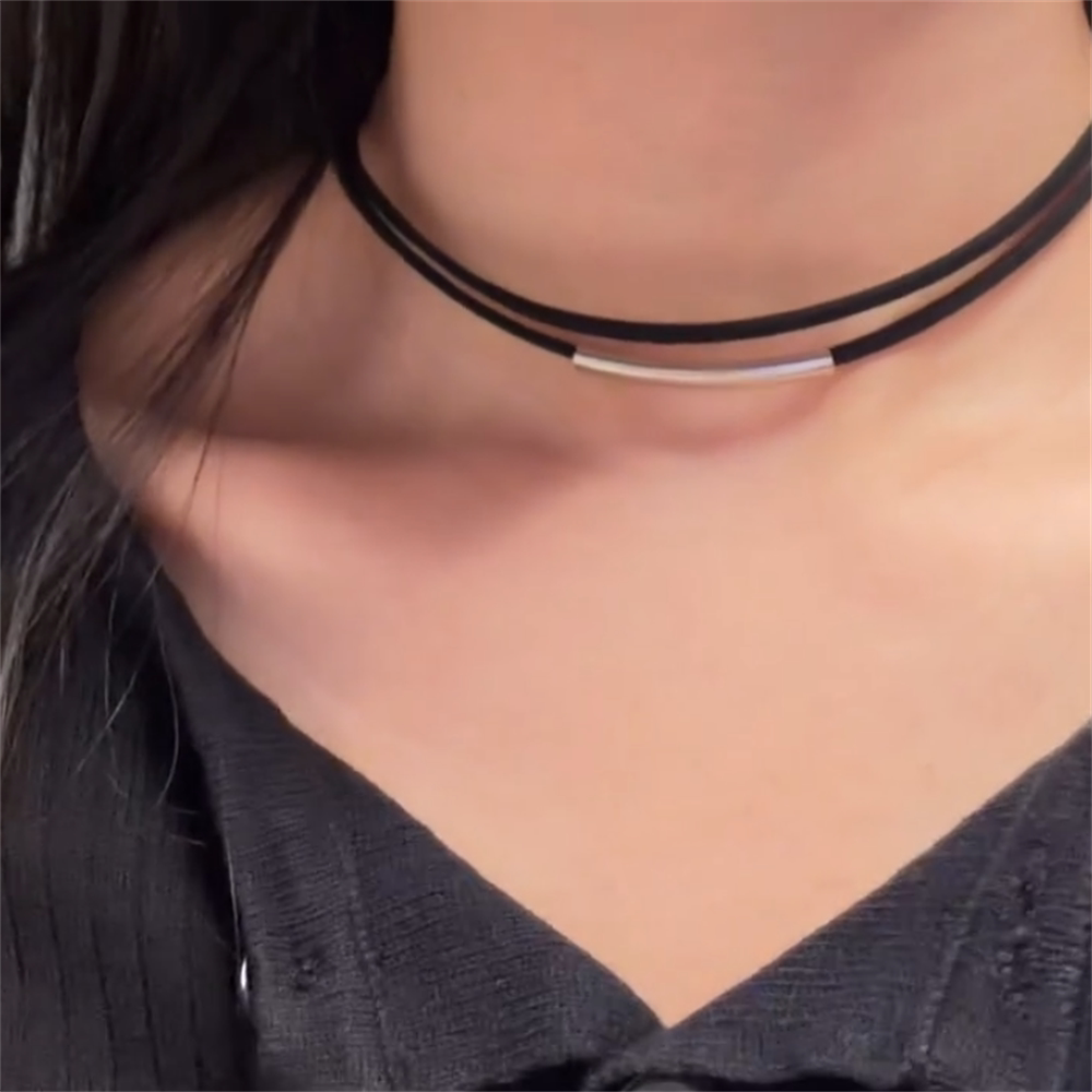 zoozmini黑色项链y2k小众设计高级感项圈简约气质百搭锁骨链颈链