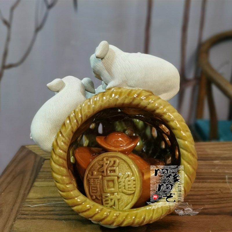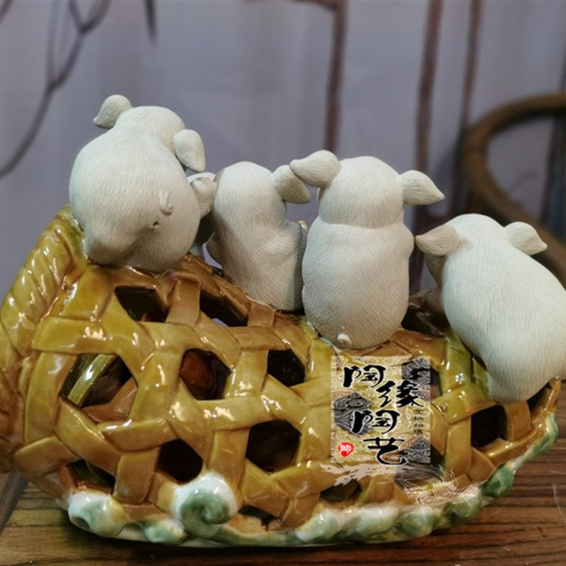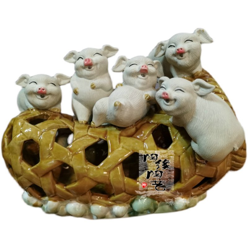 陶瓷工艺品 石湾公仔 猪笼入水 生肖 猪