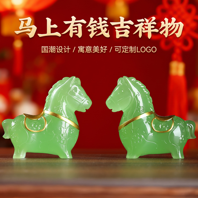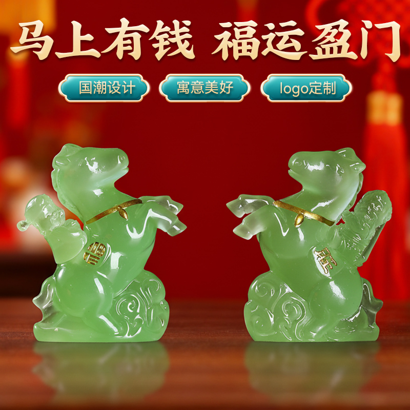 绿色玉石马摆件装饰客厅办公室桌面工艺品招财马年吉祥物马上有钱