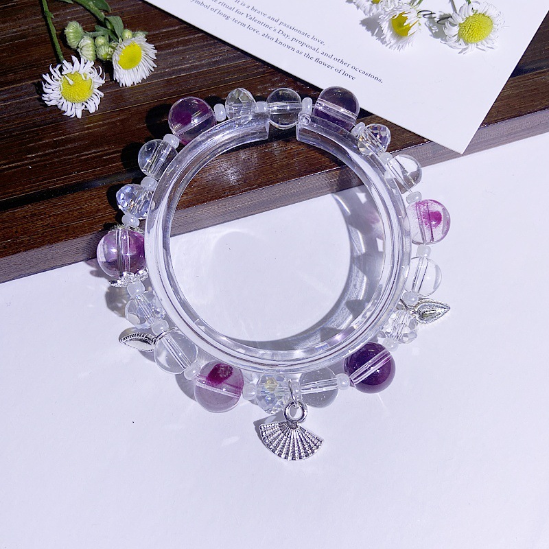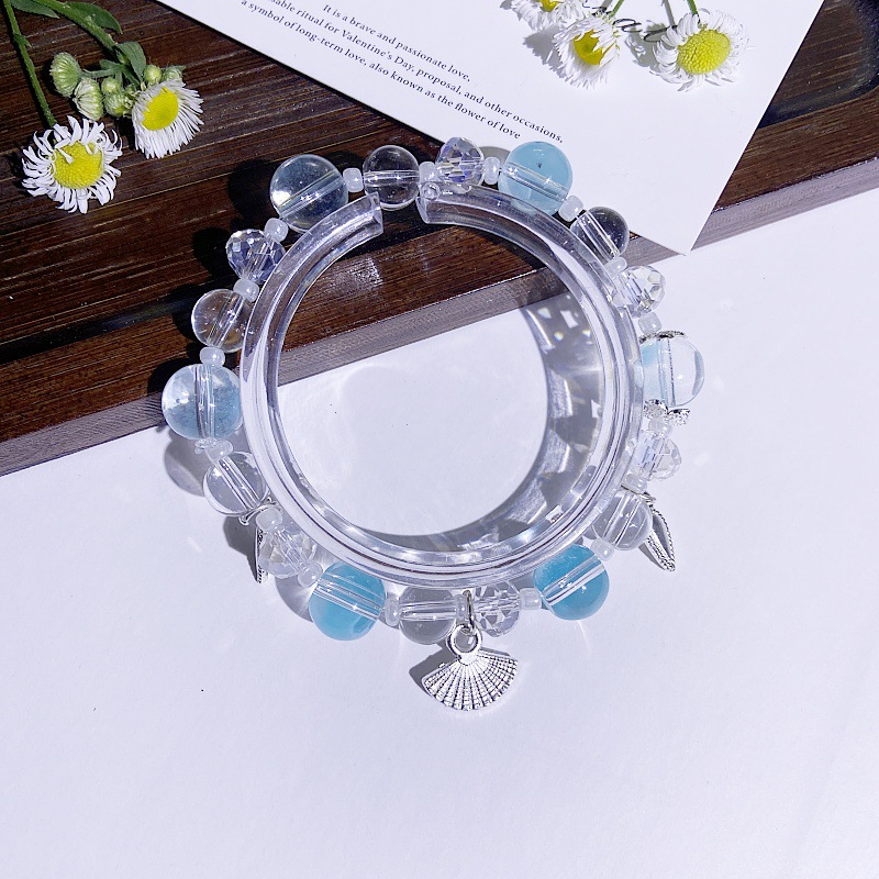 2条女孩琉璃水晶手链清新简约水墨串珠手链复古扇子百搭学生手链
