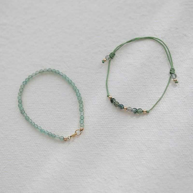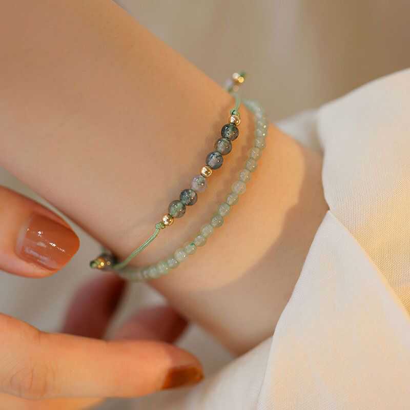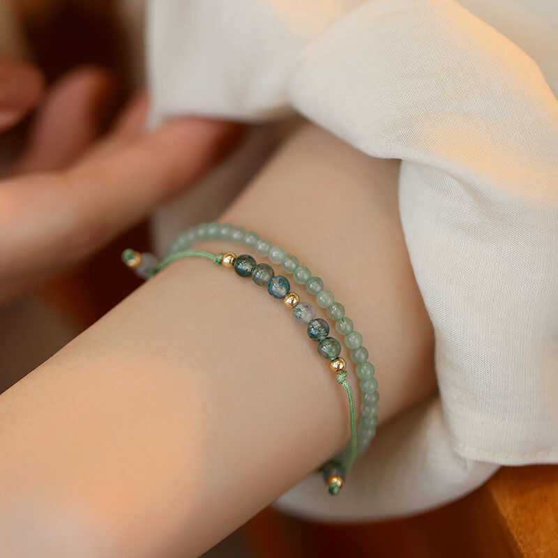 水草葡萄石水晶幸运金珠叠戴手链女玛瑙绿色极细编织手绳国风手串