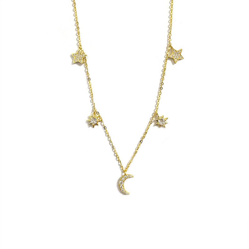S925通体纯银时尚韩系星月项链简约百搭月亮颈链小众高级感女