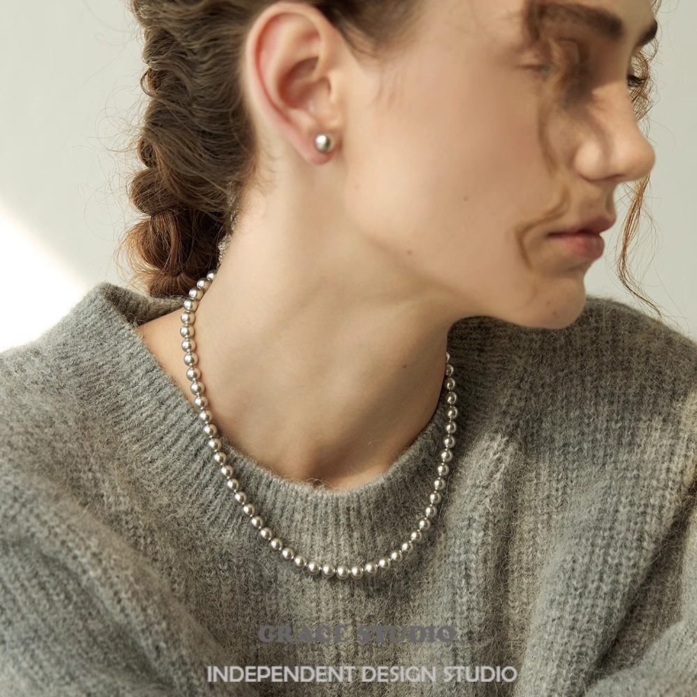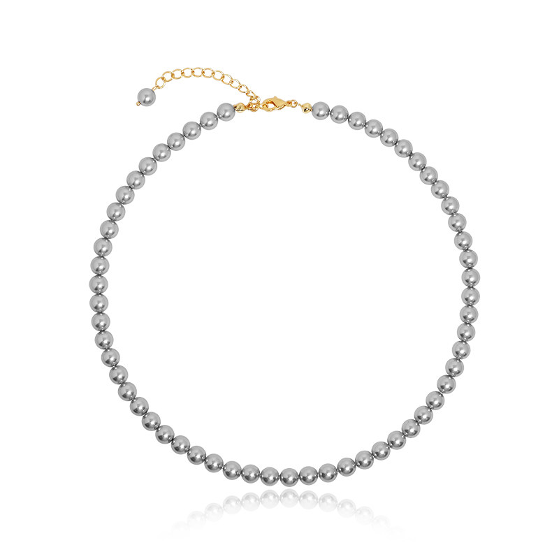G/S 时髦休闲银灰色施家珍珠项链轻奢高级贝珠叠戴锁骨链真多麻色