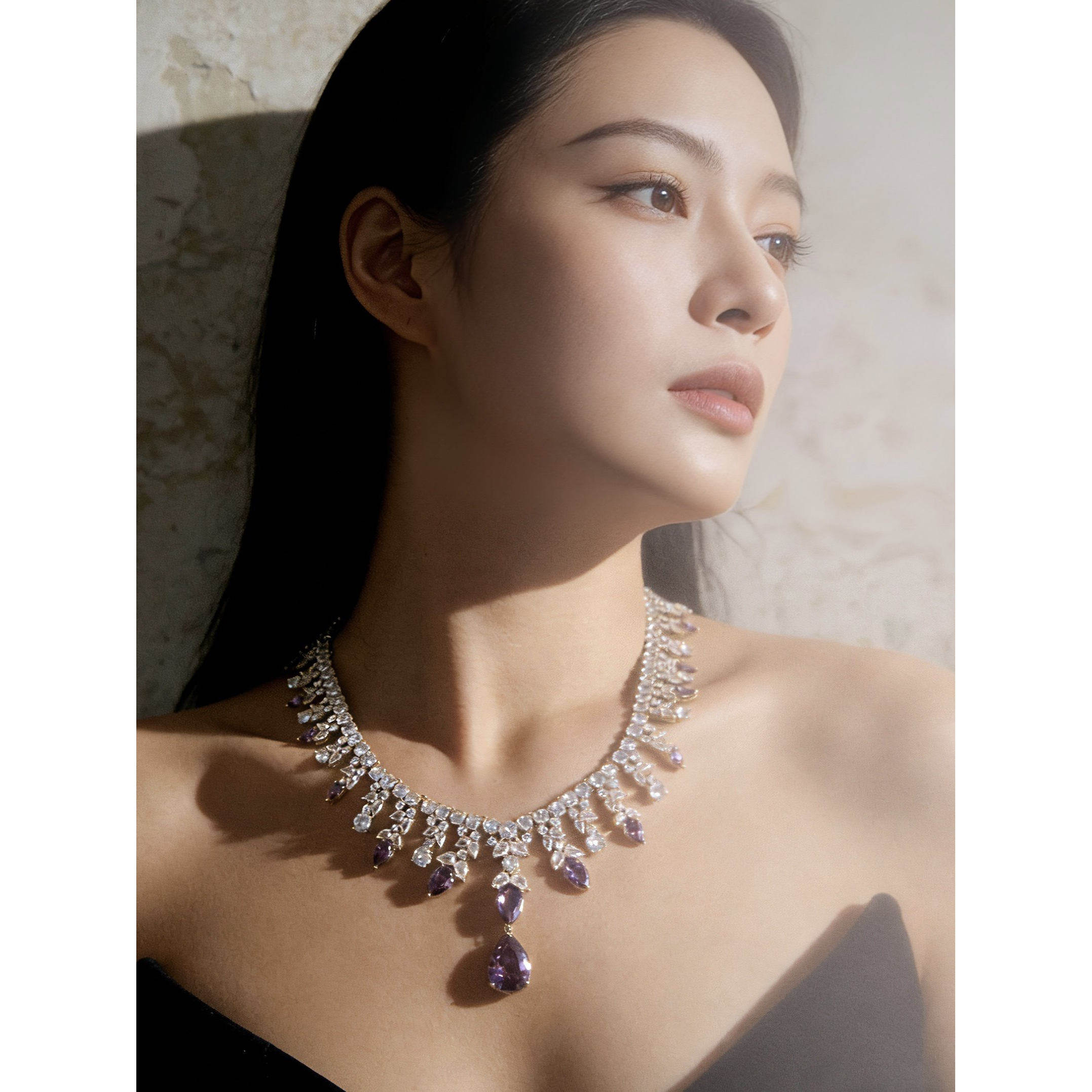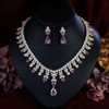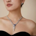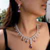 法式小众奢华满钻晚宴礼服锆石项链耳环套装新娘婚礼配饰紫色大气