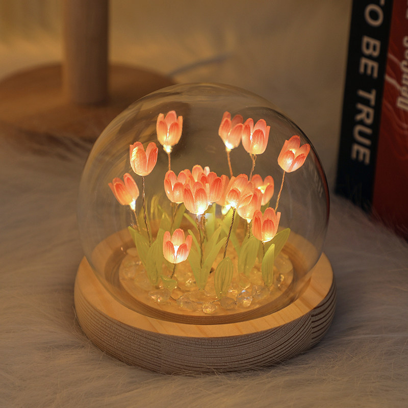 郁金香小夜灯摆件diy手工花朵卧室工位装饰品花束情人节生日礼物
