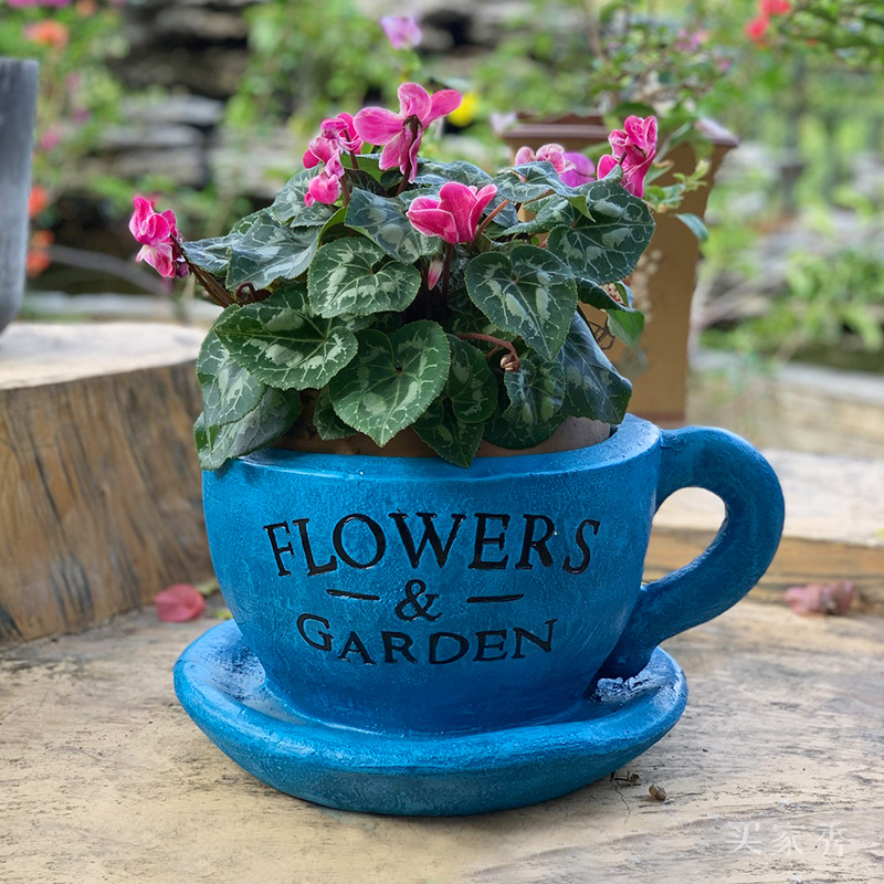 创意花园摆件创意花盆大号咖啡杯花缸庭院阳台布置造景可种植装饰