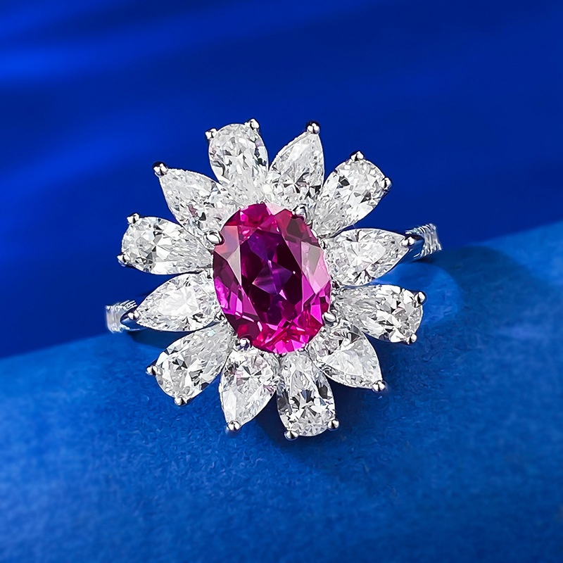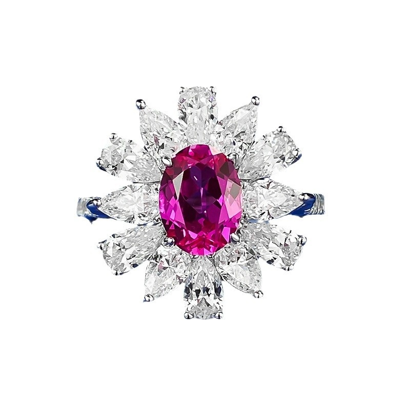 轻奢 2023新款玫红6*8mm椭圆锆石戒指女ins风款直发高级感原创