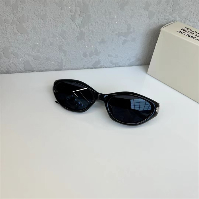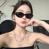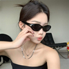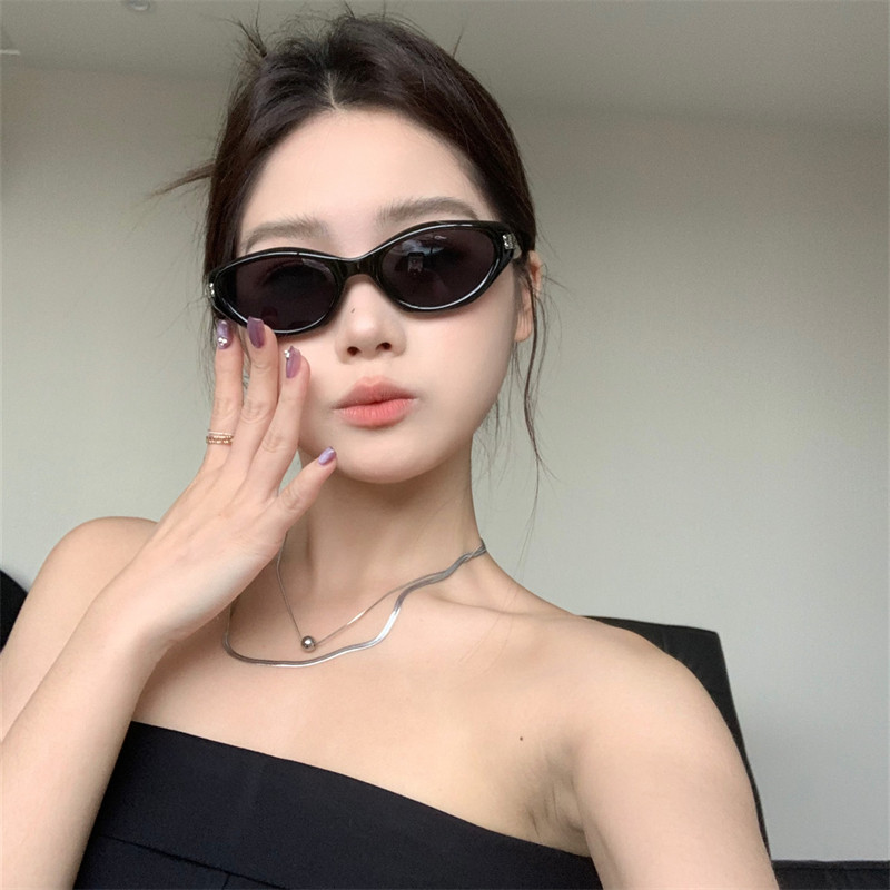 MELIYA复古几何猫眼椭圆时髦墨镜黑色ins同款凹造型太阳镜方圆脸