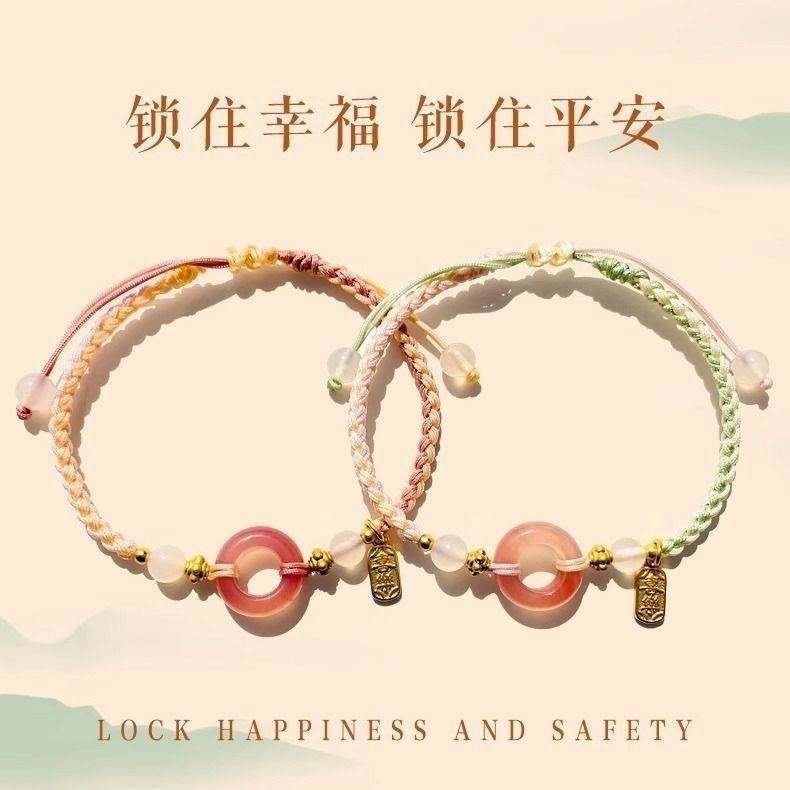 逃之夭夭粉色少女心平安喜乐扣手链配色高颜值手工编绳饰品手饰