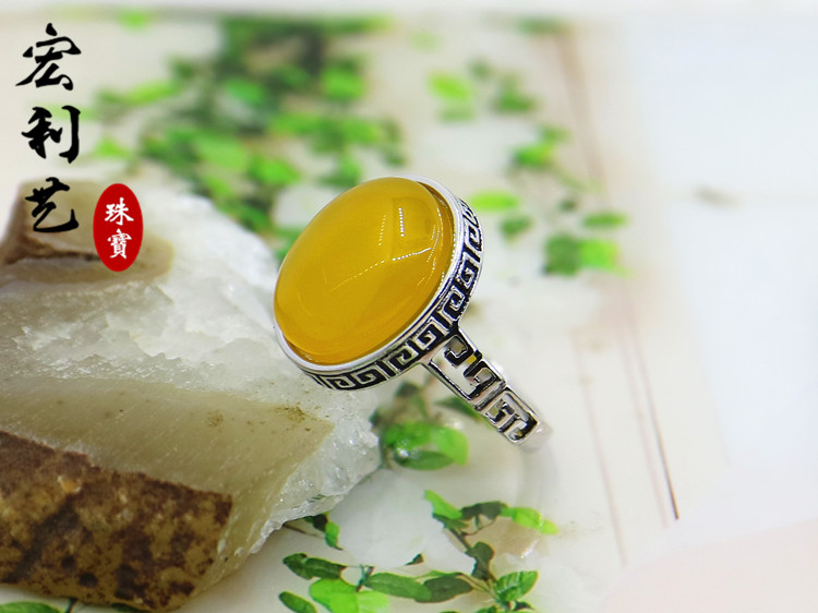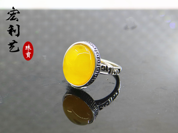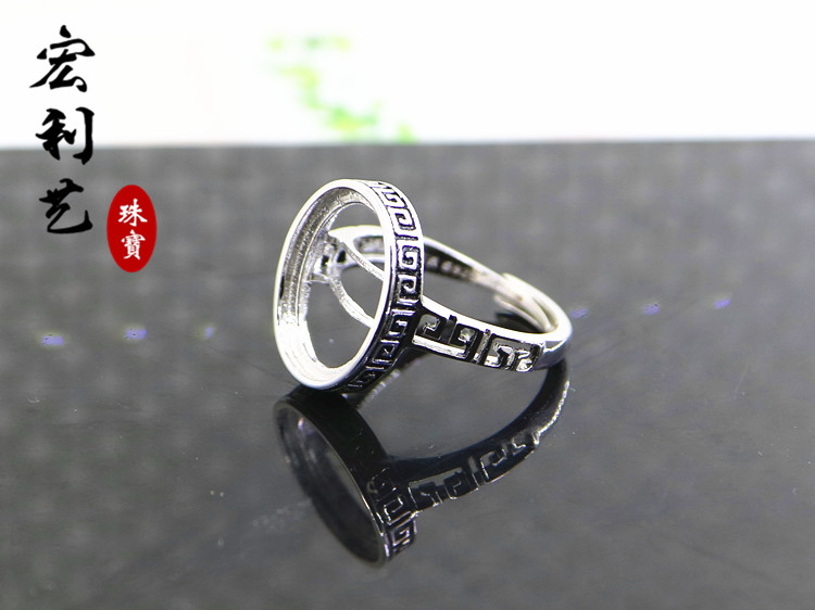 宏利S925纯银戒指空托 活口戒托银托镶嵌12*15银饰指环定制蜜蜡