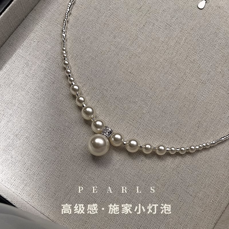 碎银几两渐变珍珠项链女夏2025年新款爆款轻奢小众锁骨链气质颈链