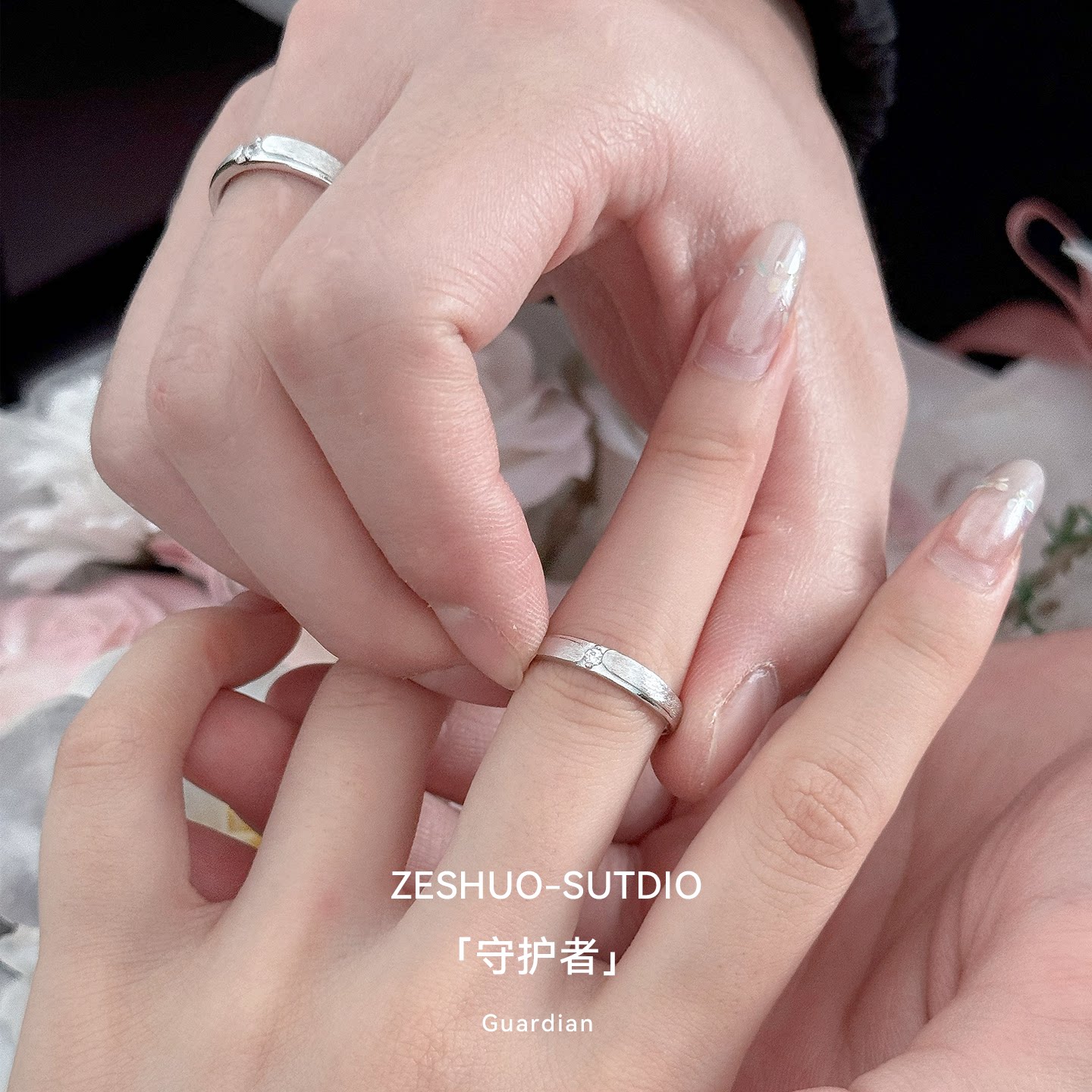ZESHUO守护者 原创小众设计s999足银情侣对戒高级感镶钻纯银戒指