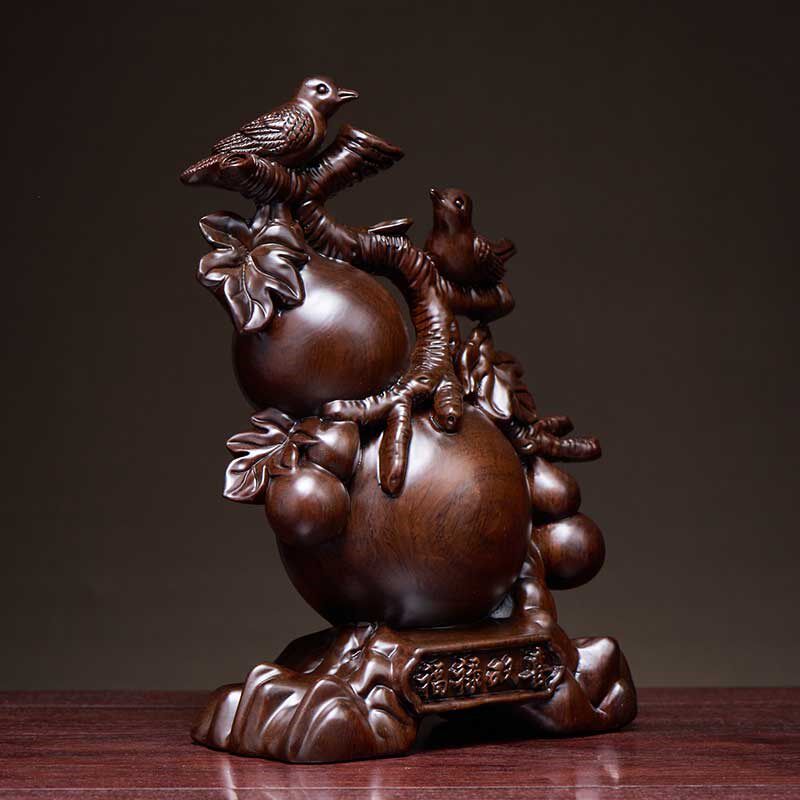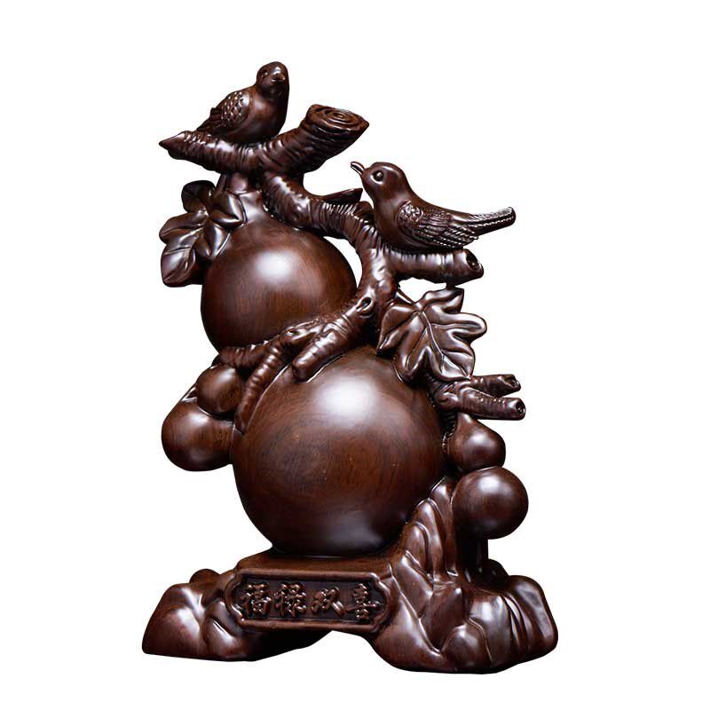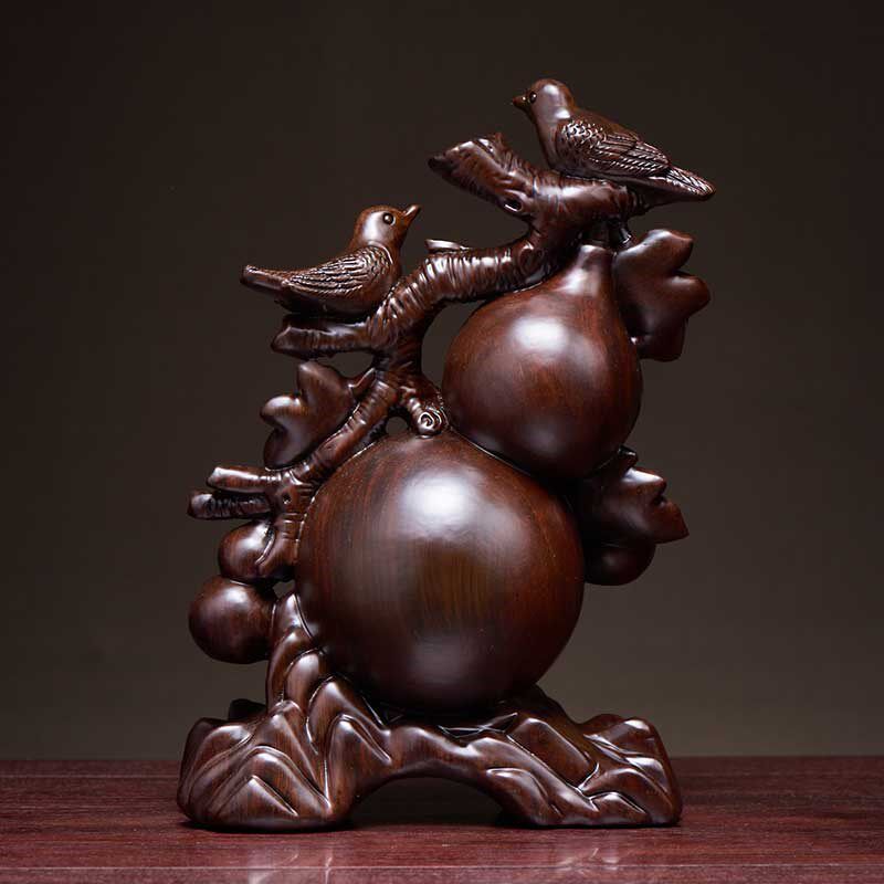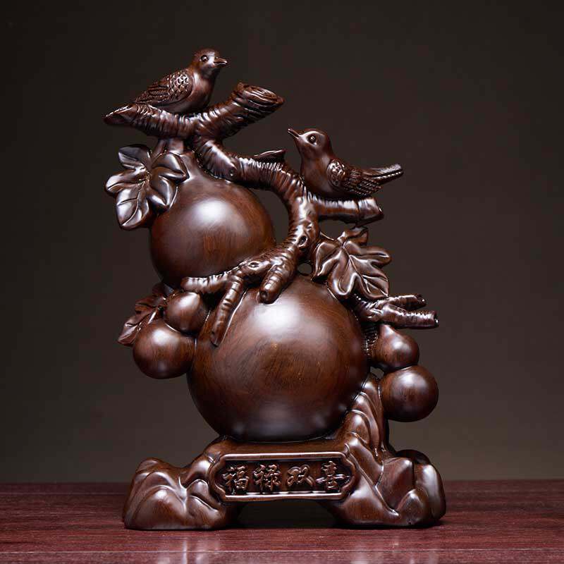 黑檀实木根雕喜上眉梢葫芦摆件客厅办公室福禄双全喜鹊雕塑工艺品