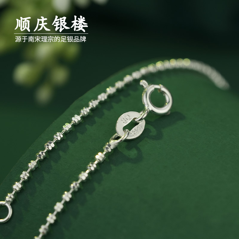 顺庆银楼S925银女款银砾项链小众设计款简约精致民族风送礼物首饰
