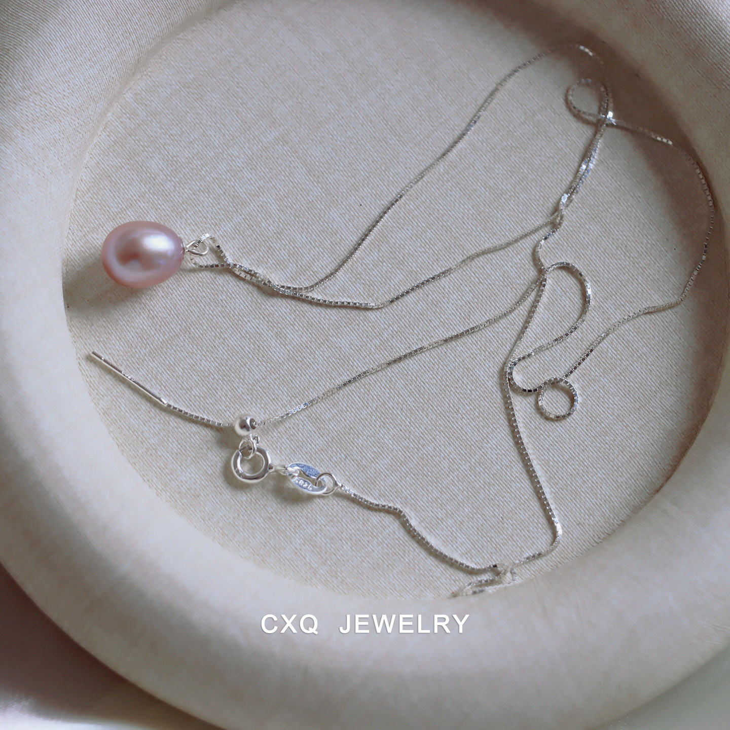 天然紫色珍珠项链女s925纯银锁骨链精致百搭复古高级感颈链配饰