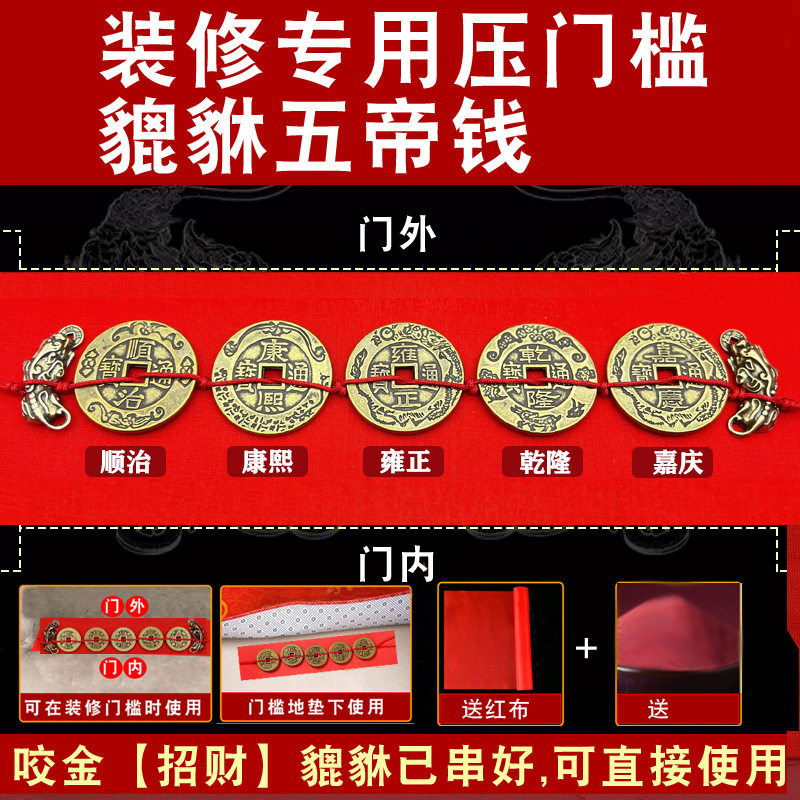 加厚铜钱五色珠压枕头埋门槛摆件压枕头地毯车垫底入户门
