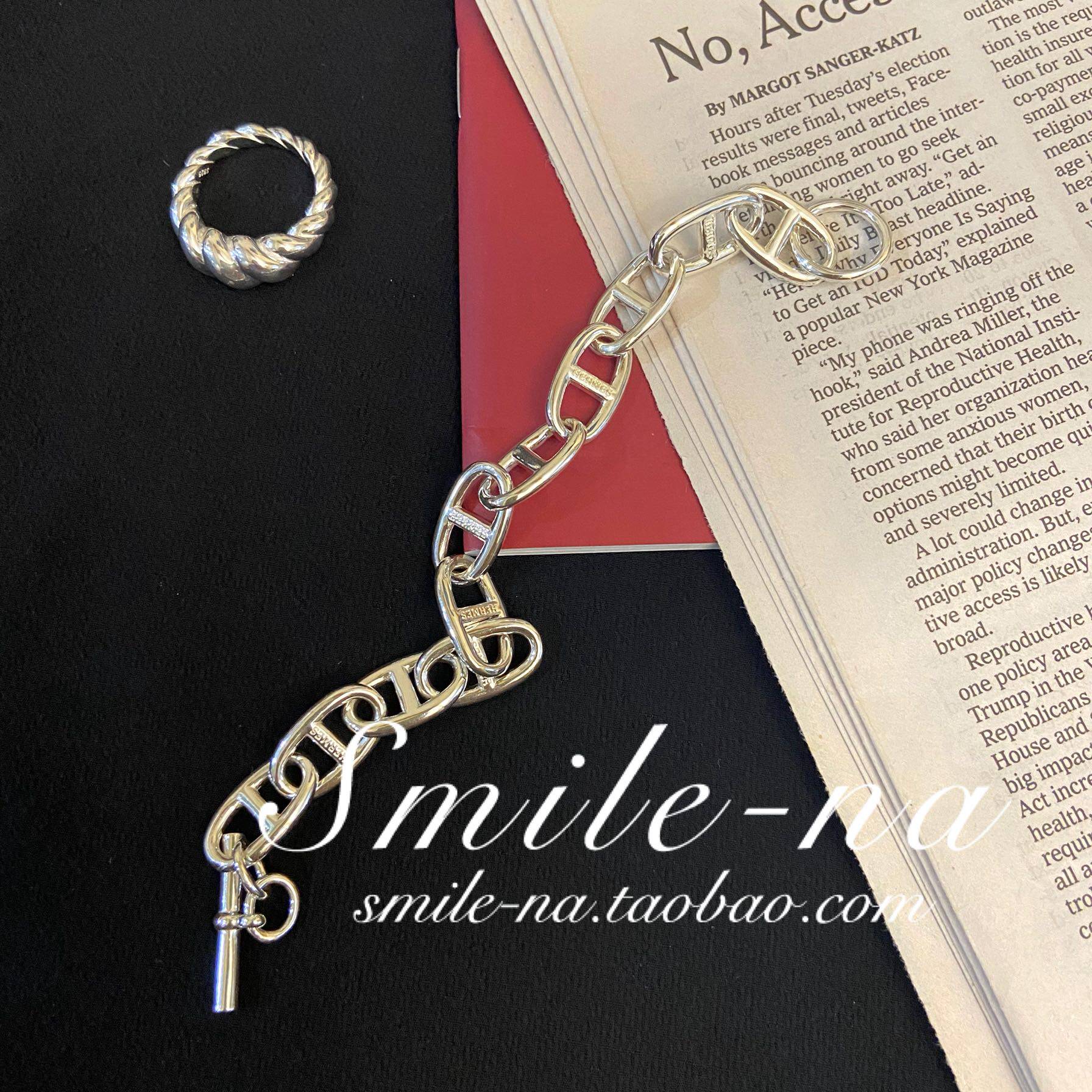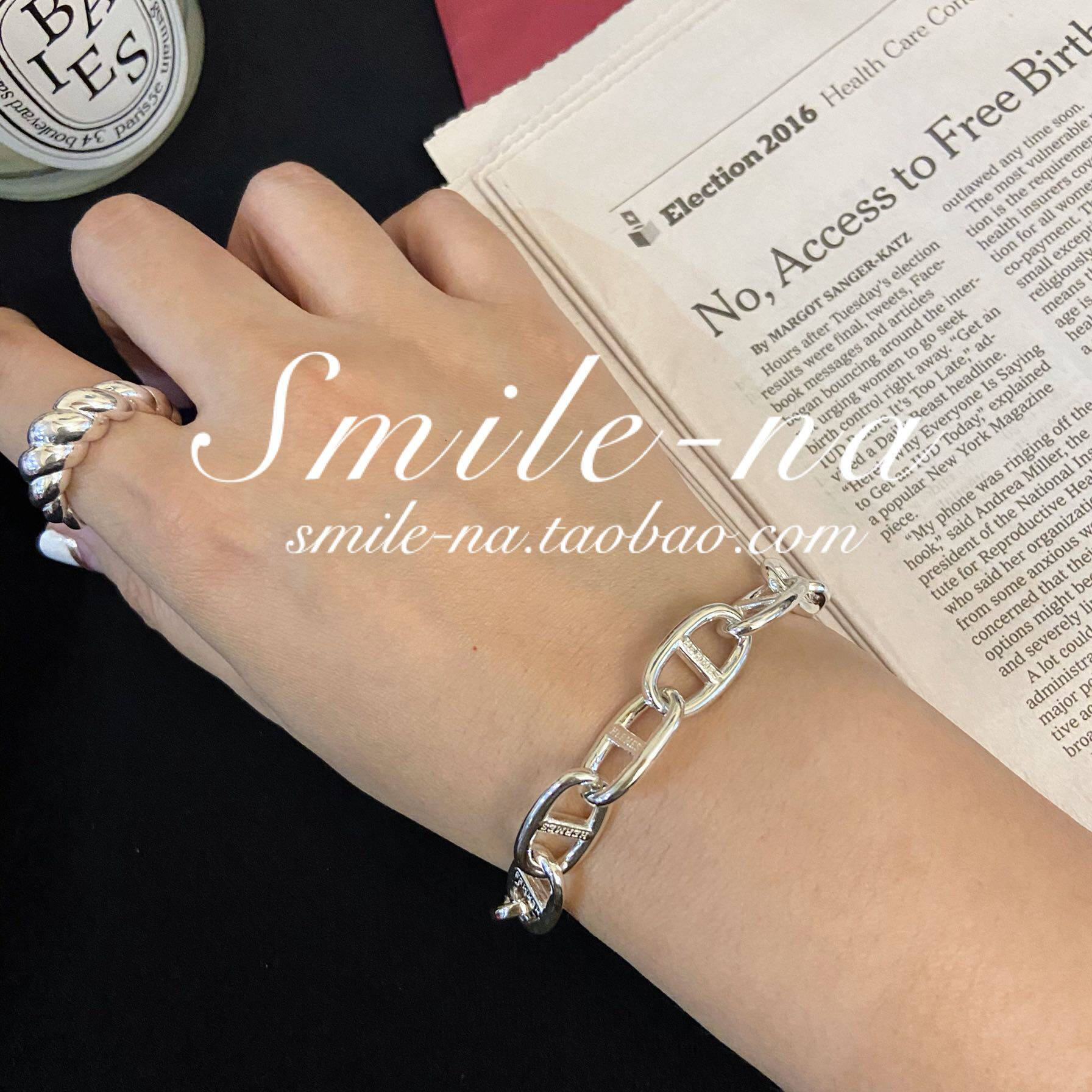 韩国东大门进口925纯银OT扣猪鼻子搭扣手链 重工实心手链女情侣款