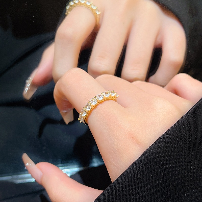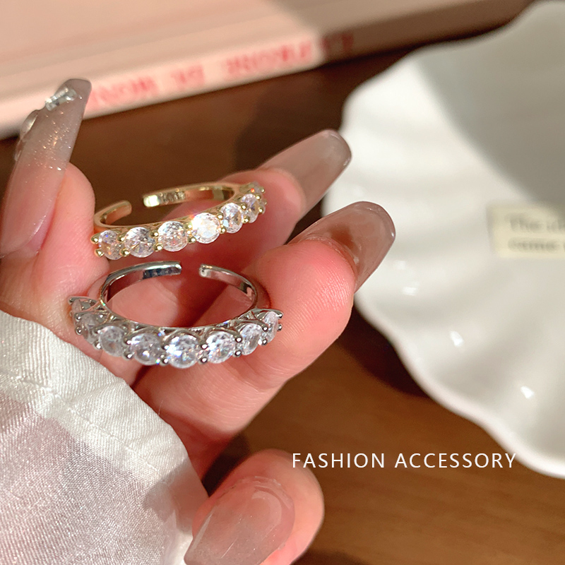 超闪火彩锆石排钻中指食指戒指女轻奢小众设计精致高级感2025新款