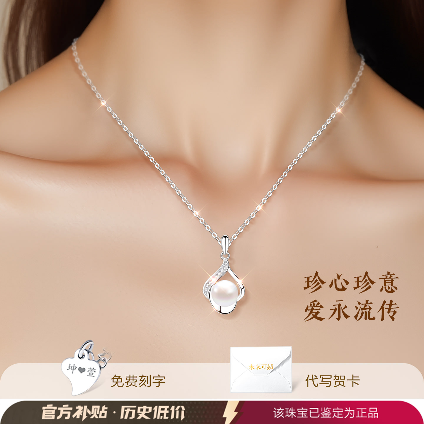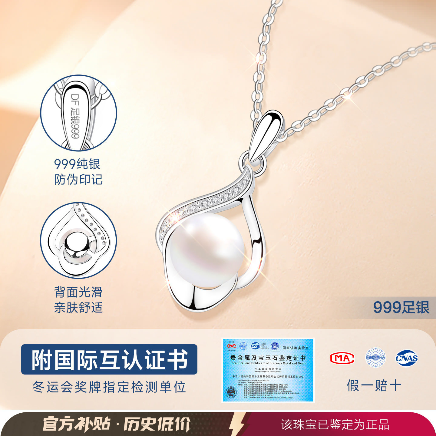 银项链999纯银女妈妈款单颗淡水珍珠吊坠女士生日圣诞礼物送妈妈