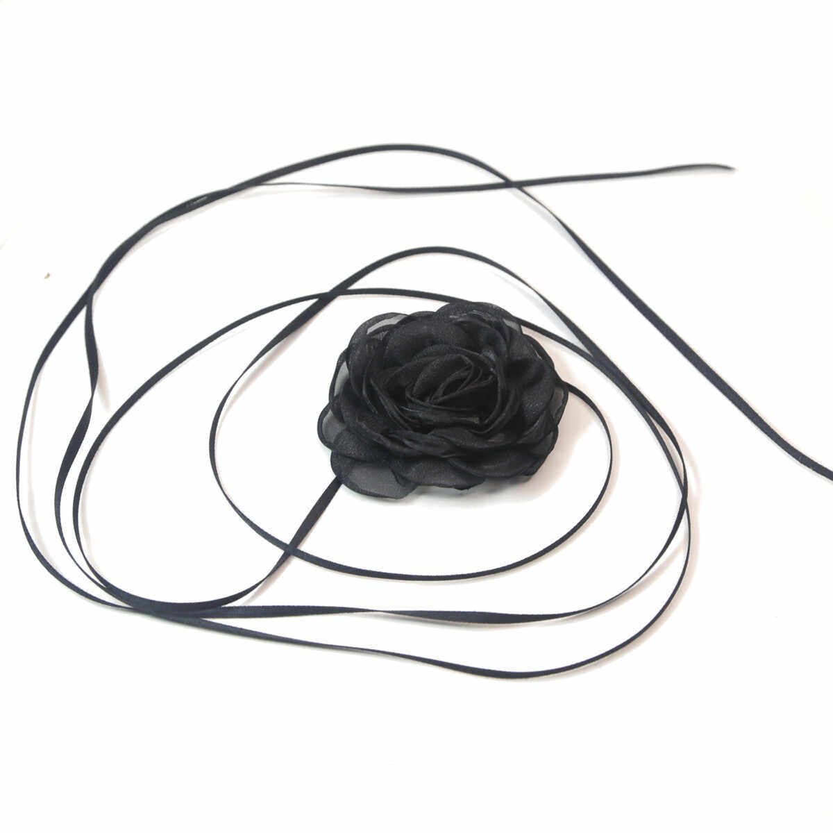 新款黑色超仙山茶花系带暗夜玫瑰花朵飘带脖子配饰头绳时尚百搭