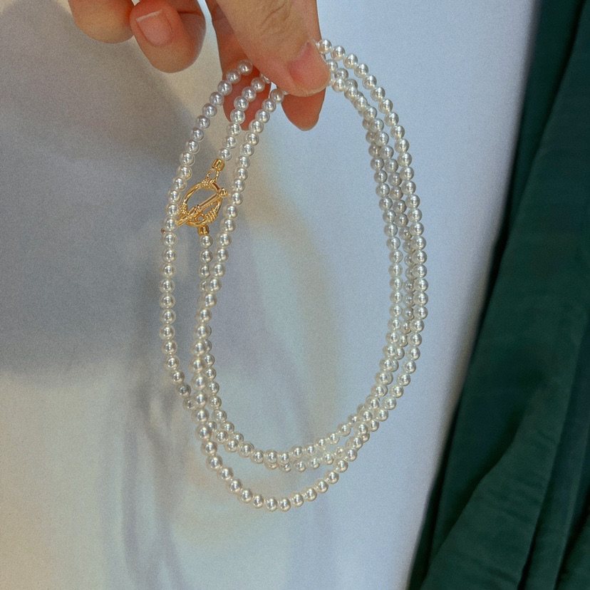 4mm人造珍珠baby珠项链长款毛衣链双层链90厘米多种戴法