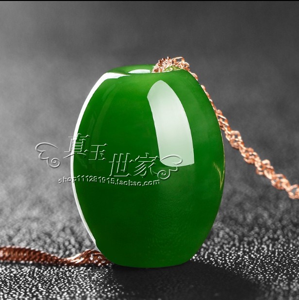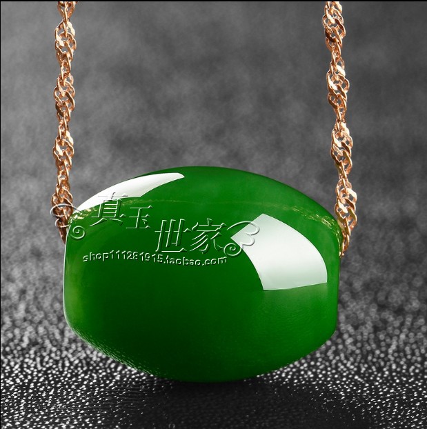 和田色玉阳绿色路路通吊坠冰种玉石转运珠女玉坠银链吊坠挂件配饰