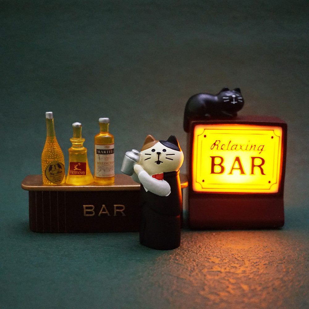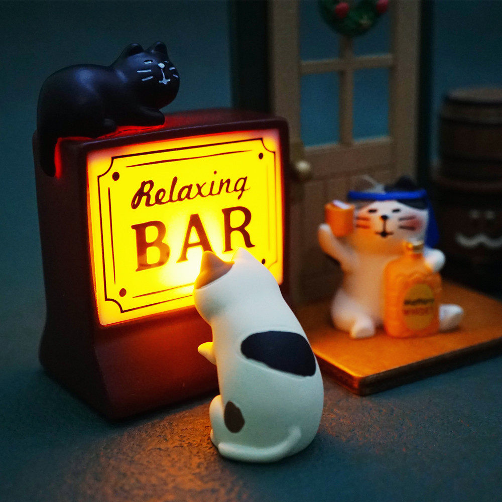 日式zakka猫咪酒吧灯箱车载装饰桌面发光摆件黑猫看板LED可亮灯
