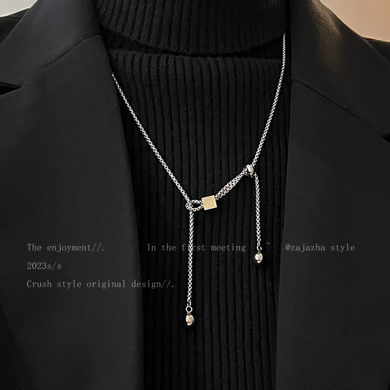 简约可抽拉毛衣链女生秋冬时尚潮酷百搭冷淡风配饰搭配卫衣的项链