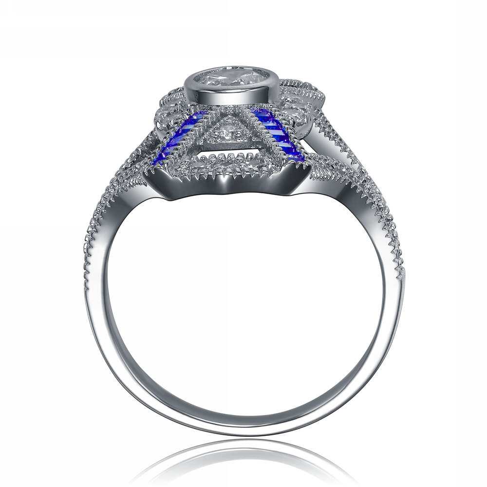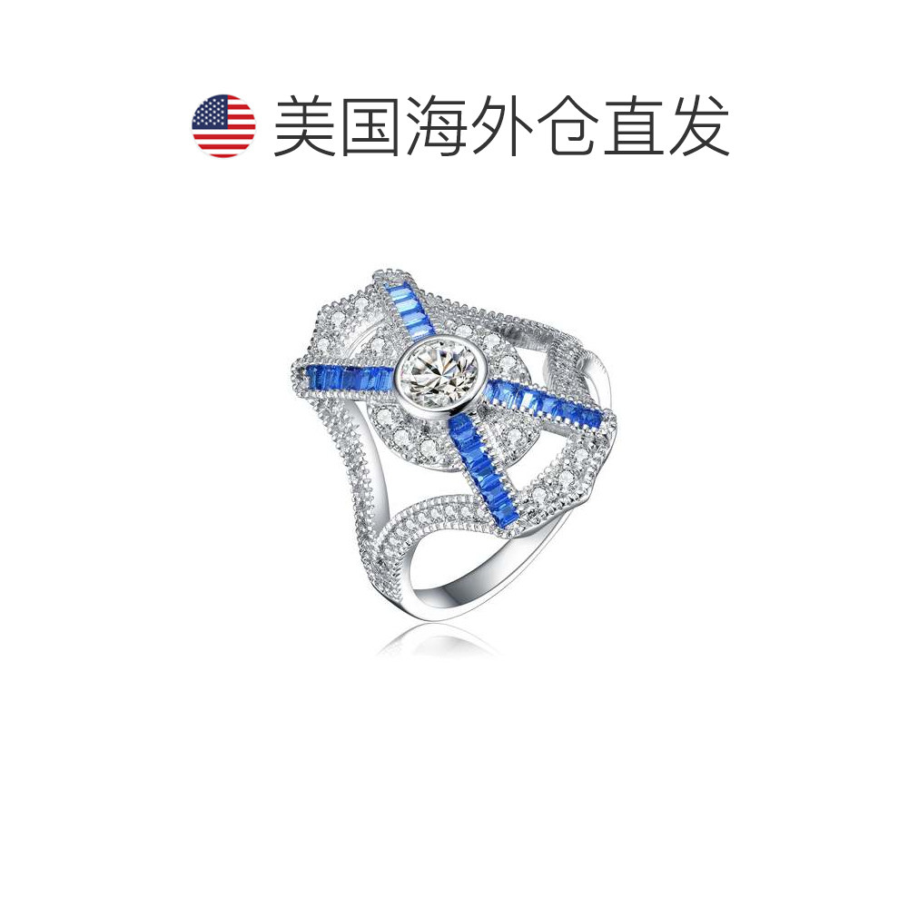 自营 GENEVIVE 纯银蓝宝石立方氧化锆几何鸡尾酒戒指 - 蓝色 美国