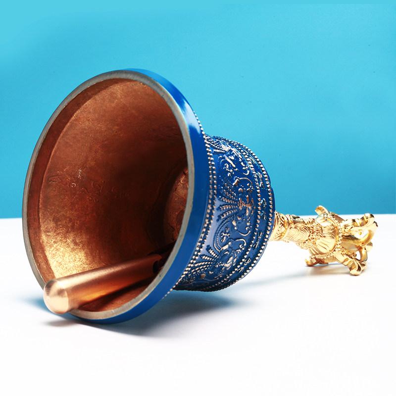 尼泊尔手工金刚铃杵法器密宗修行供奉摆件黄铜蓝色金刚杵五股九股
