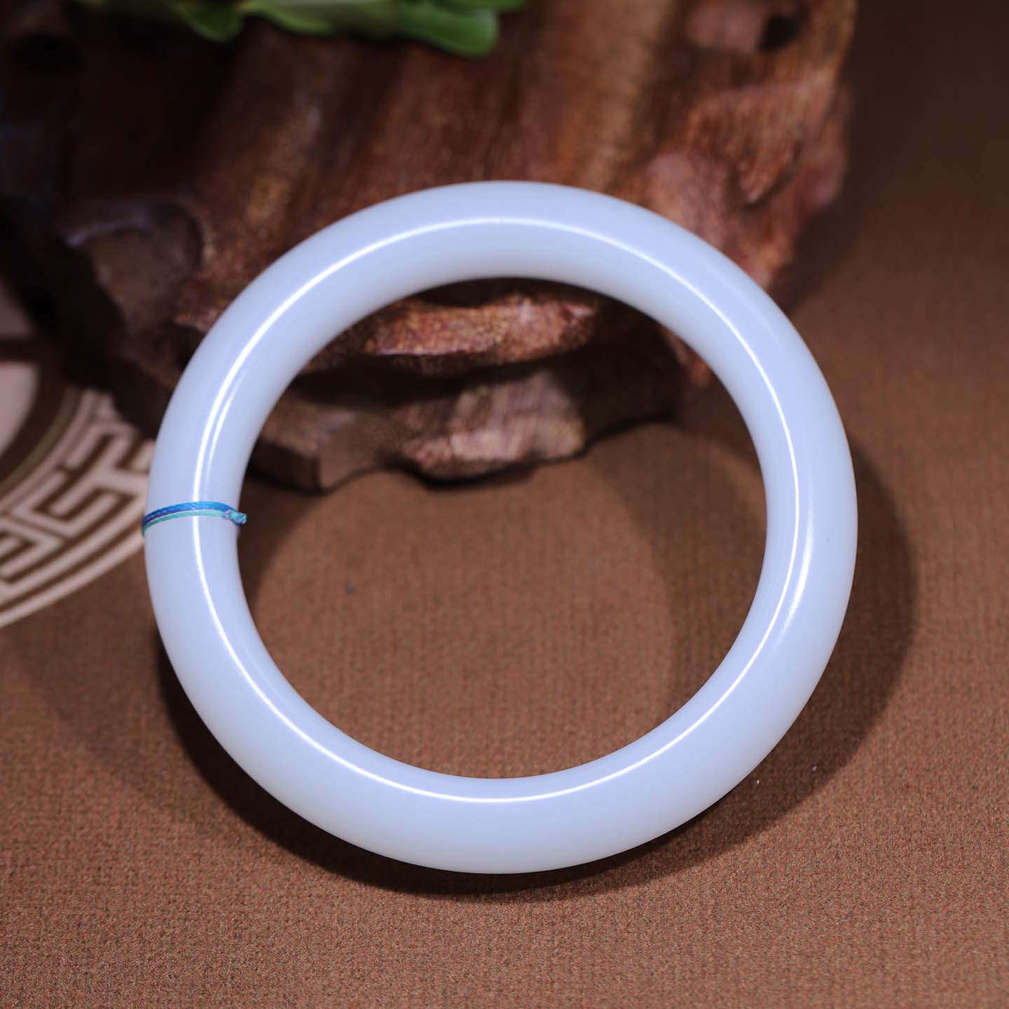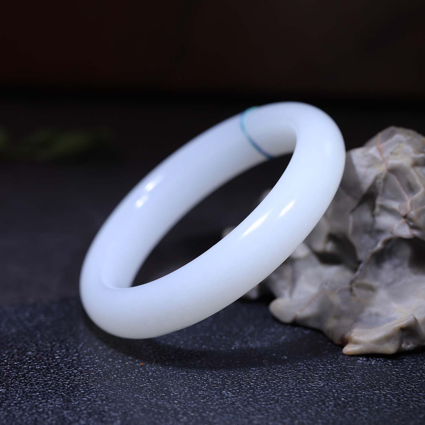 玉秀新疆和田玉56圈细宽条手镯女款定制手饰苏工籽料羊脂玉带证书