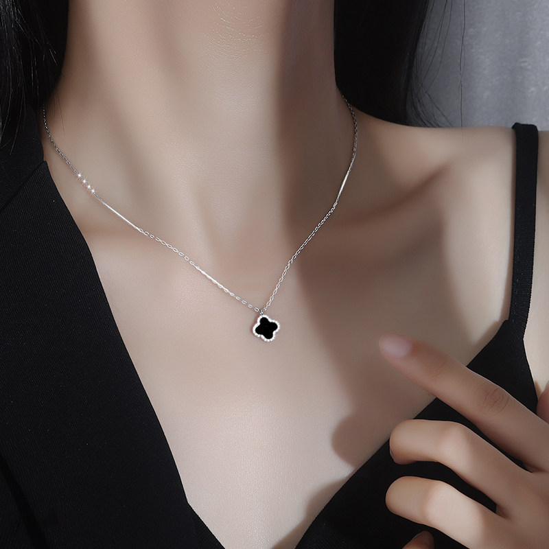 冷淡风黑色四叶草项链2025年新款女款冷淡风轻奢小众设计感锁骨链